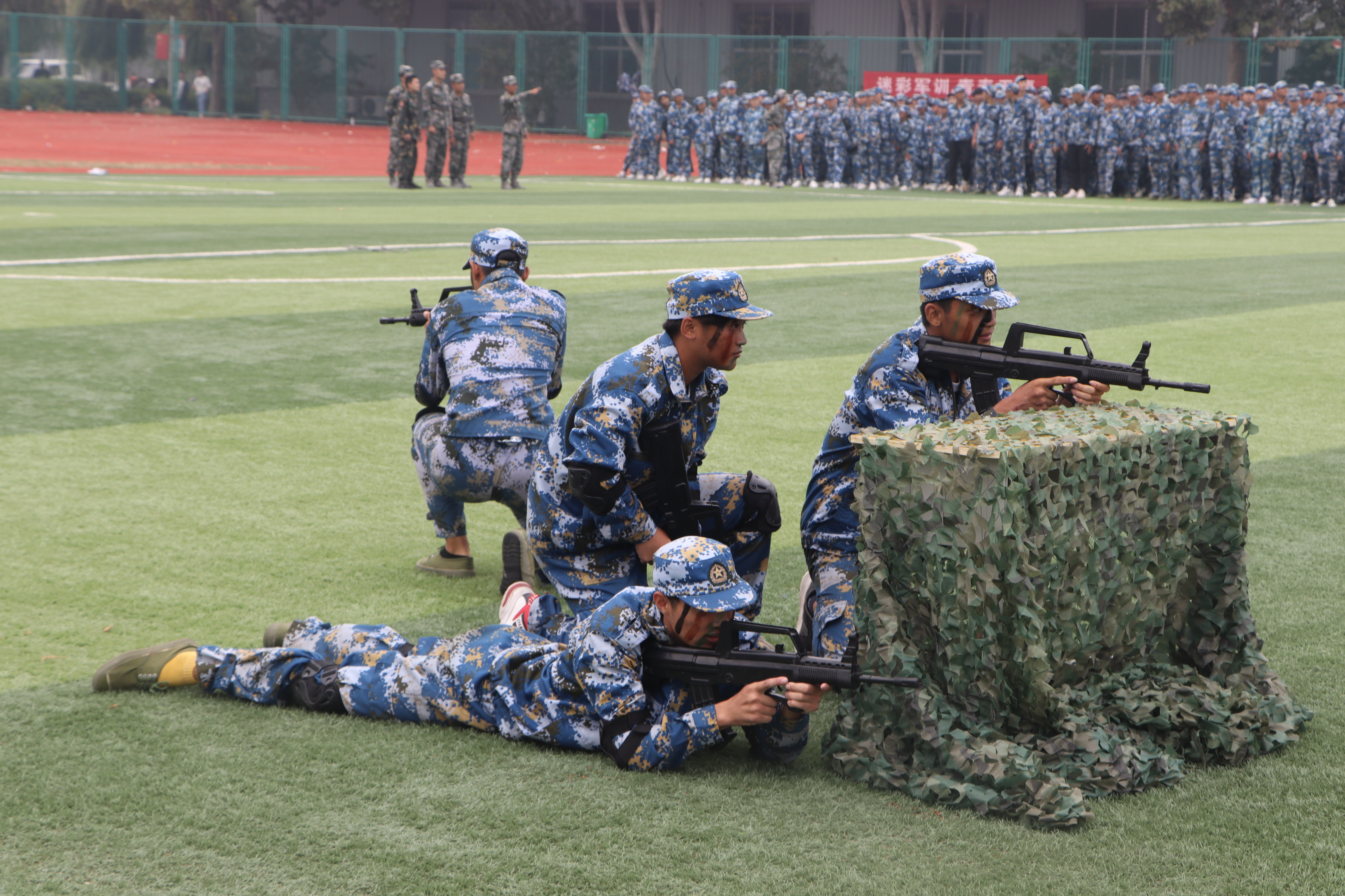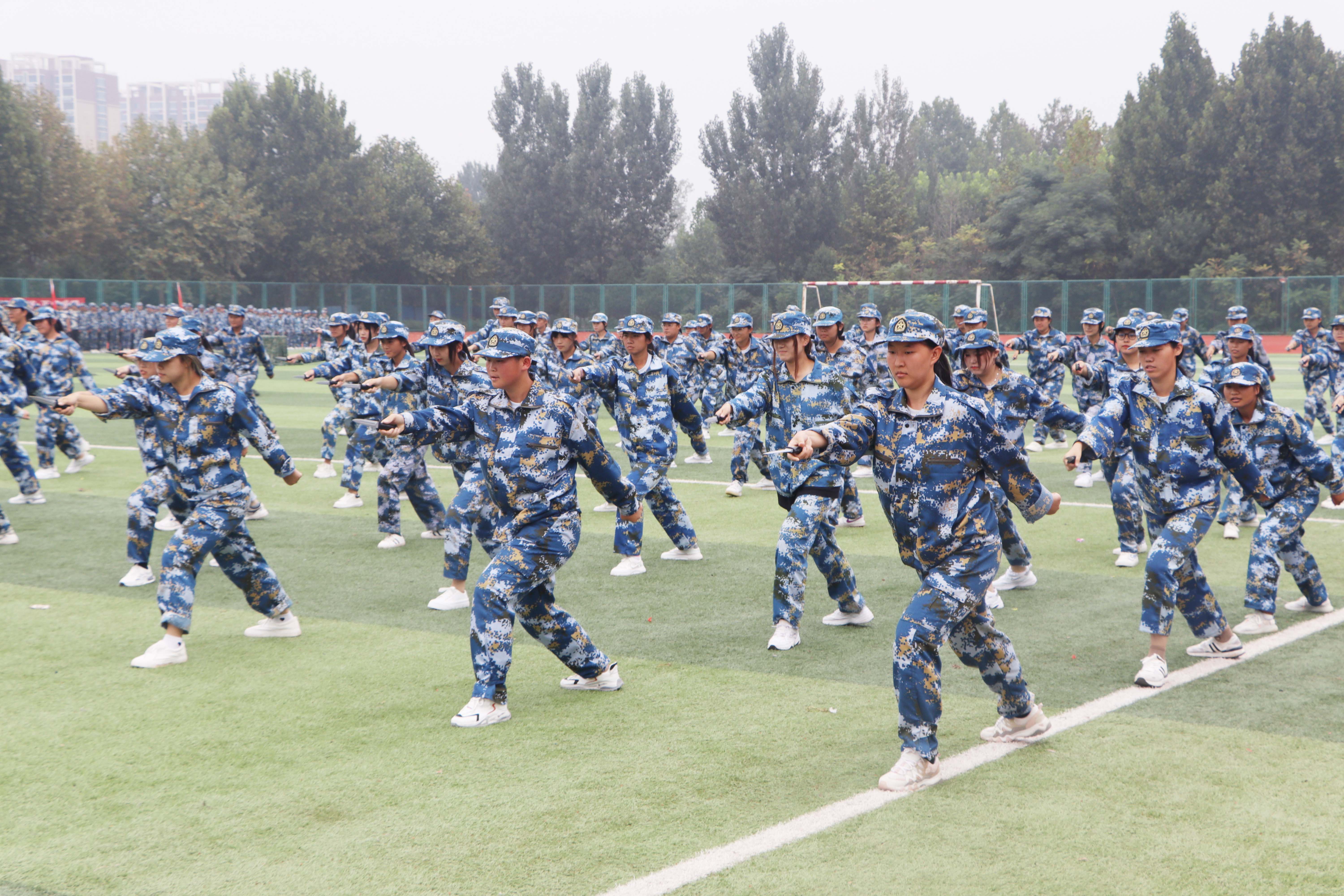 在雄壮的国歌声中,大会拉开序幕。孙京家宣布开始军训成果汇报后,主校区全体2021级新生以规范的队列、整齐的步伐,精神饱满、口号响亮地依次通过主席台,向全院师生展示半个月的军训成果,赢得了现场师生的阵阵掌声。随后,部分军训连队及德州机电工程学校进行了军体拳、匕首操、团体操、战场模拟等训练科目汇报演出。