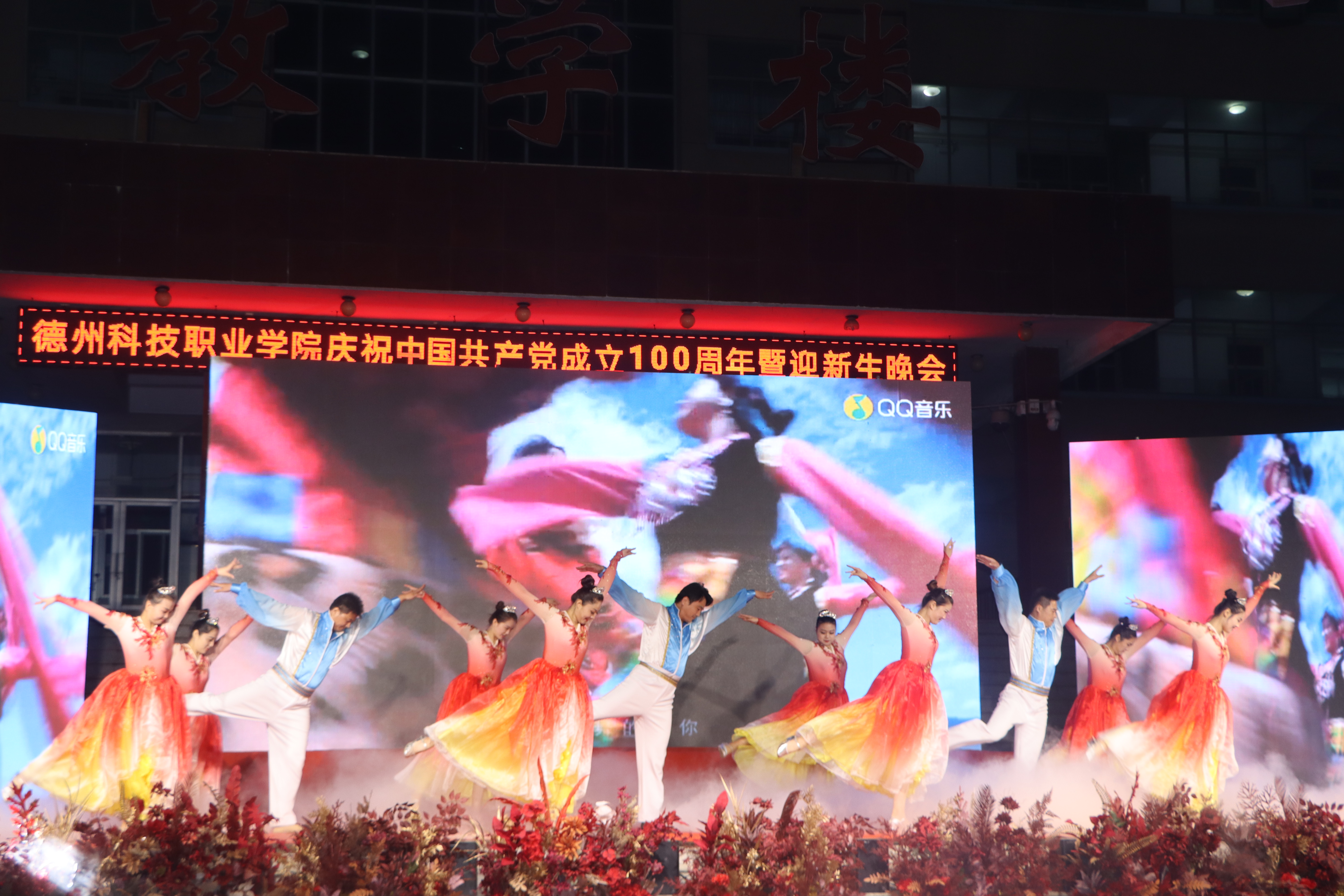为喜迎2021级新生,展现德科学子青春向上、蓬勃昂扬的良好风貌,9月29日晚,由共青团德州科技职业学院委员会主办,学生工作处、医学护理学院、信息财经学院、智能工程学院、德州机电工程学校、融媒体中心协办的“筑梦青春,扬帆起航”—庆祝中国共产党成立100周年暨迎新生晚会在主校区教学楼前广场举办。