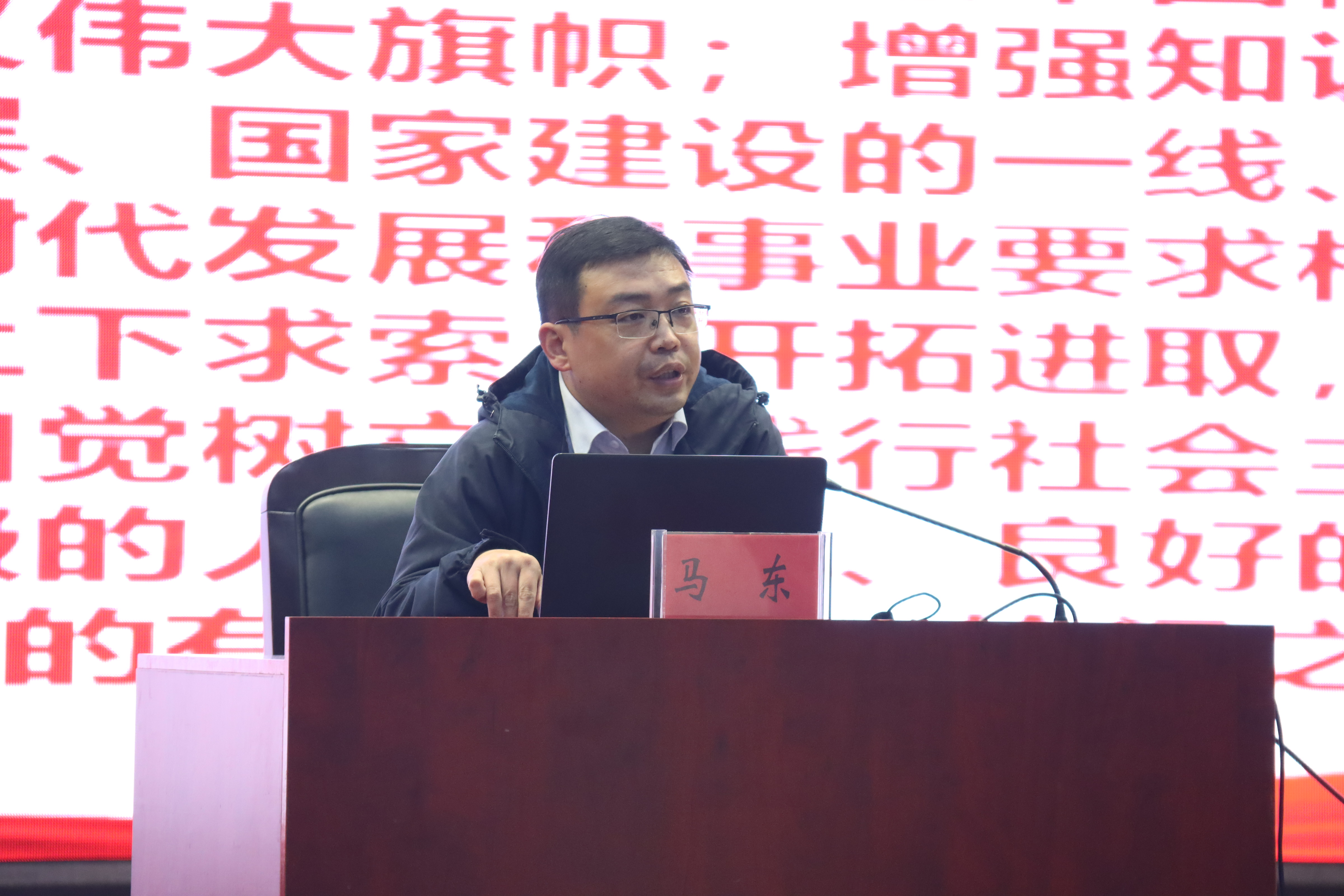 宣讲报告会上,马东以《深入学习贯彻党的十九届六中全会精神,在新征程上展现新作为作出新贡献》为主题,分别从“准确把握六中全会精神和《决议》的重大意义”“准确把握党的百年奋斗历程及成功经验”“准确把握以伟大建党精神为源头的精神谱系”和“准确把握青年大学生的使命任务”等4个方面,与共青团员、大学生代表交流学习体会。