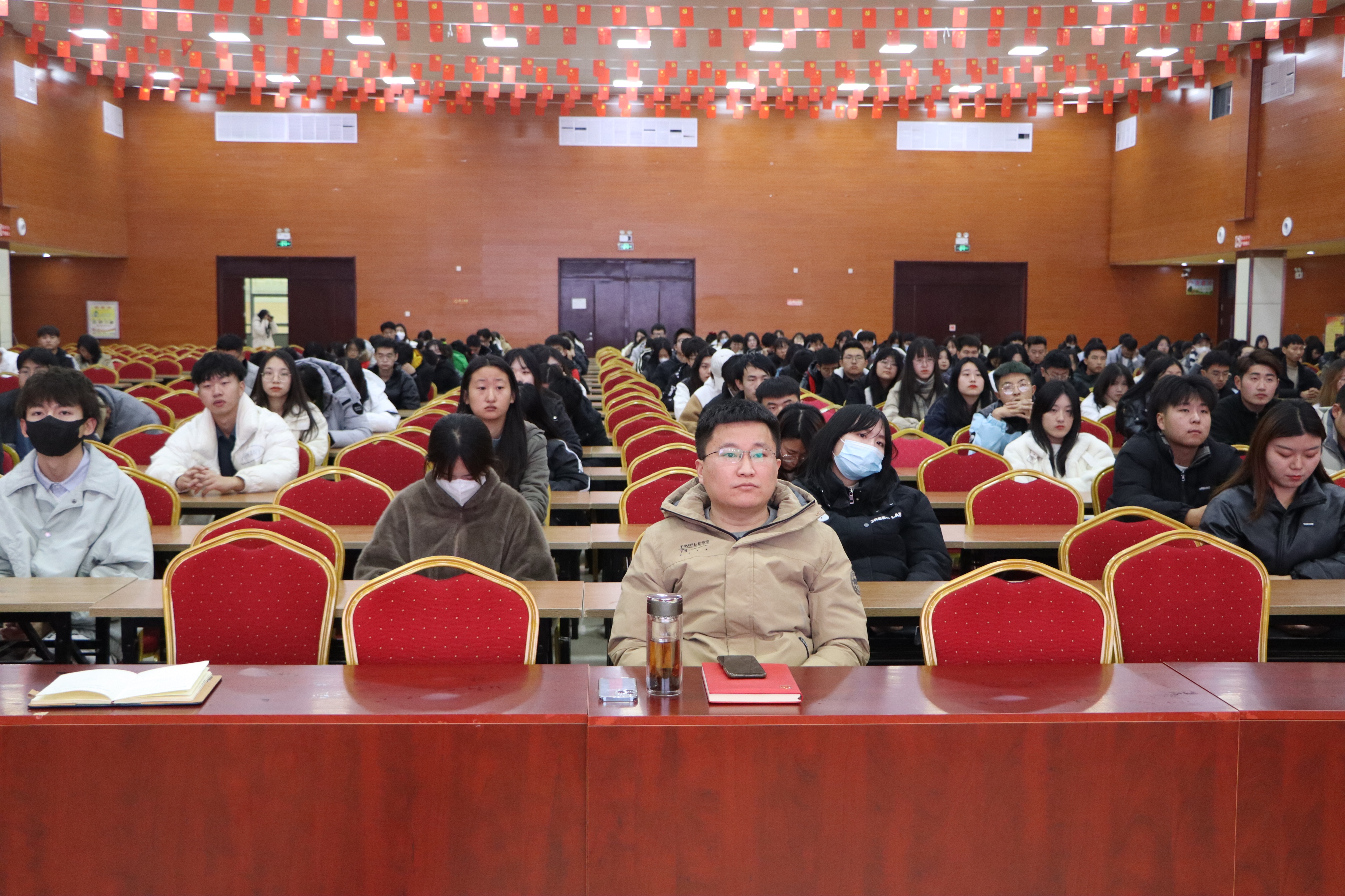 学院团委书记孙强强,以及党委办公室、团委有关人员,与学院主校区300余名大学生参加宣讲报告会。