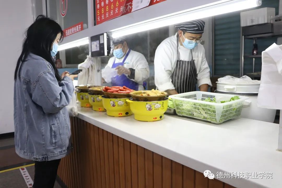 从校园封闭的那一刻起,80余位餐厅、超市的工作人员,与院领导、部门职工、辅导员一起,义无反顾地选择住校,与学生们一道抗击疫情。学院总务处坚决把学生的健康、生活的保障放在第一位,坚决保证餐厅供应。