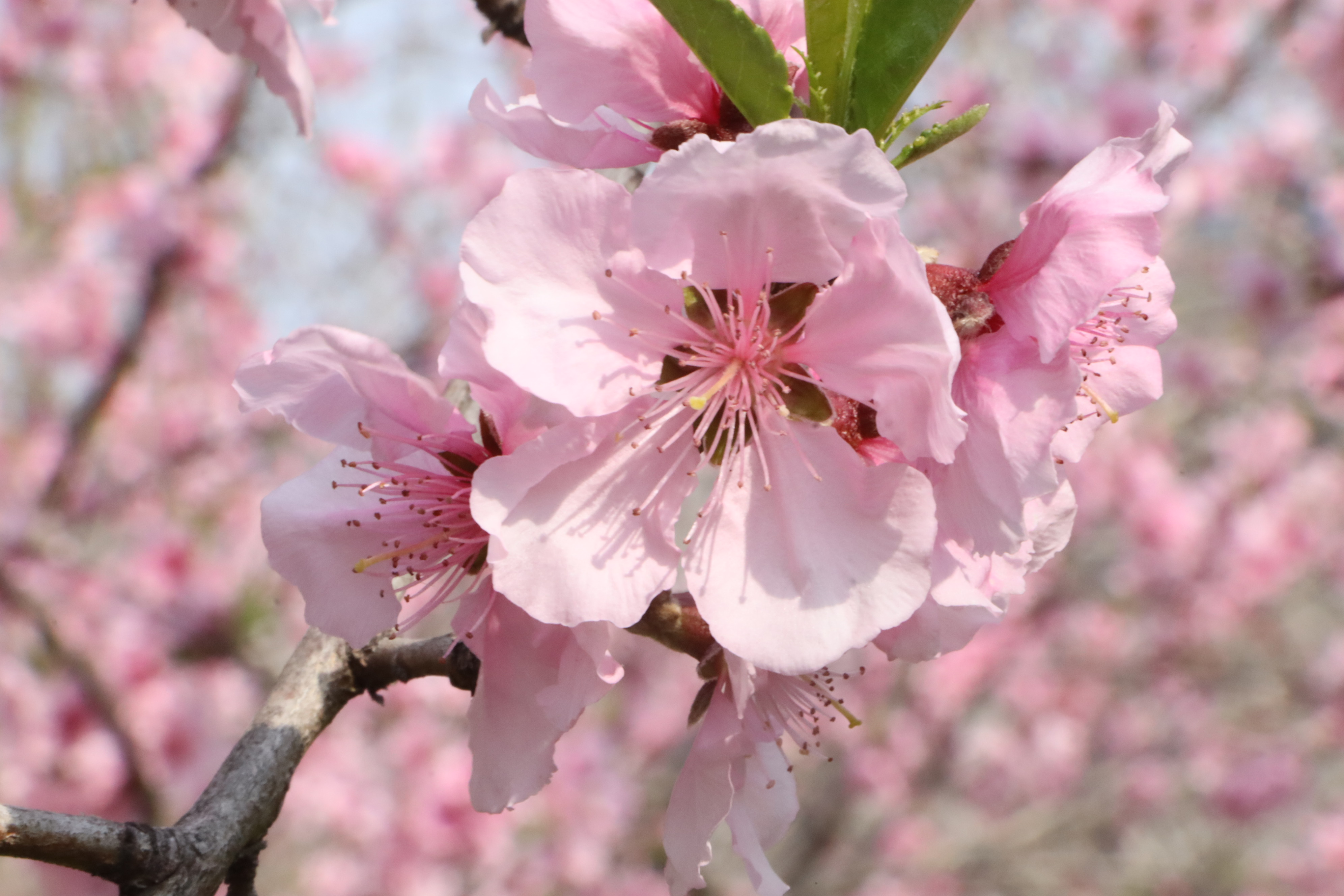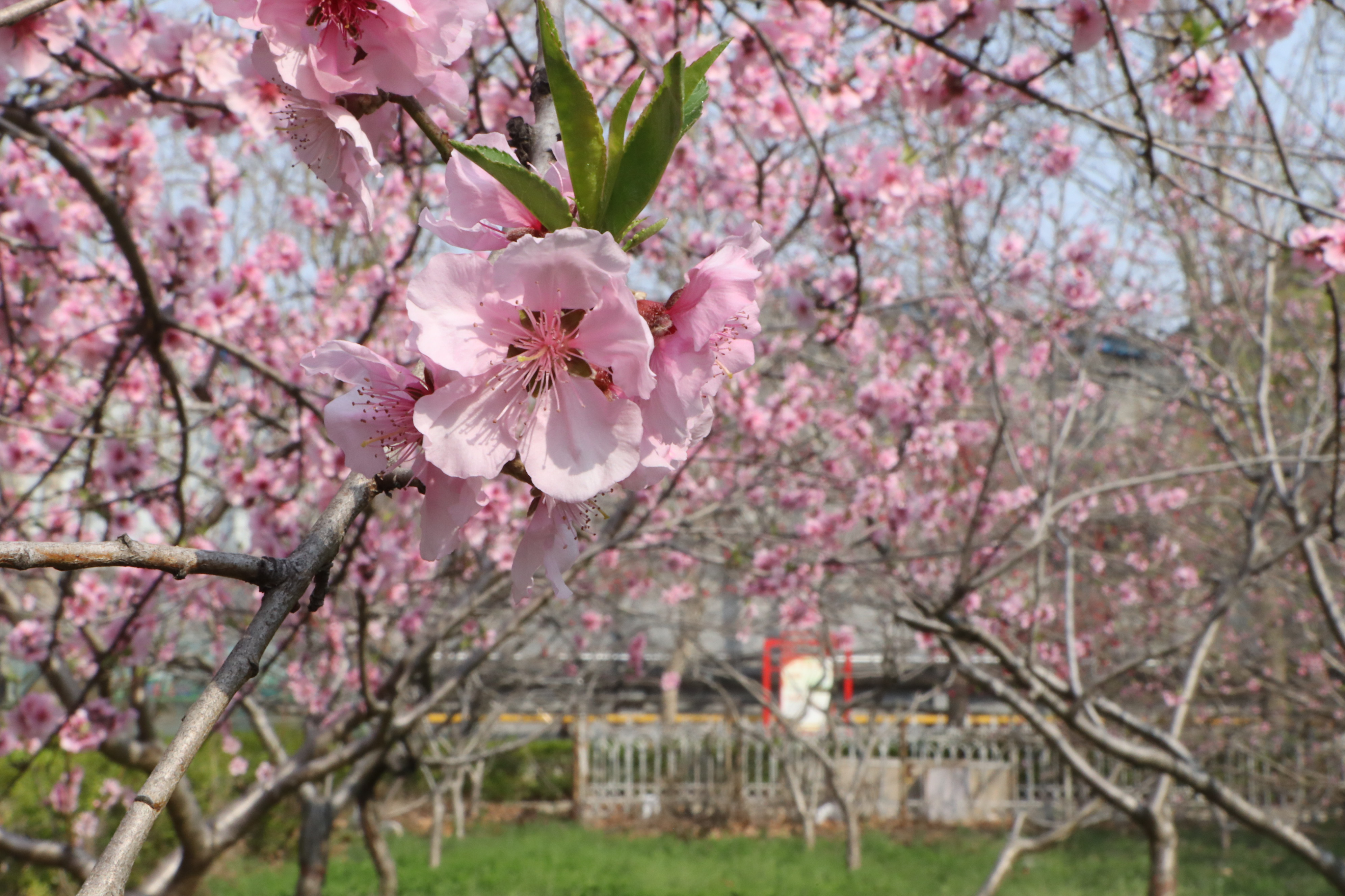碧桃花开,芳菲烂漫。碧桃花,又名千叶桃花,花形有单瓣和重瓣之分,花色也有深红、浅红、粉红、红粉相间和白色。花语:有消恨之意