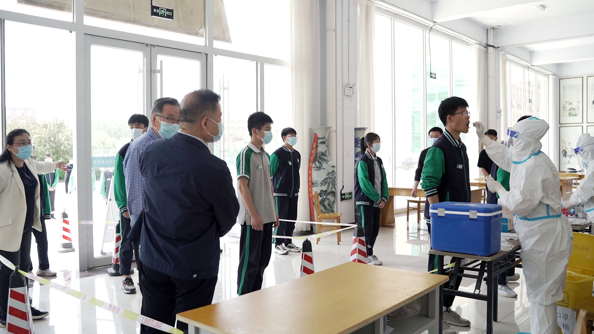 滕海强一行来到图书馆核酸检测点,详细了解了近段时间学院关于校园封闭管理、全员核酸检测、师生人员防护措施、后勤服务保障等工作落实情况,对学院采取的防控措施和开展的相关工作给予充分肯定,对疫情防控、教育教学等工作提出了要求。