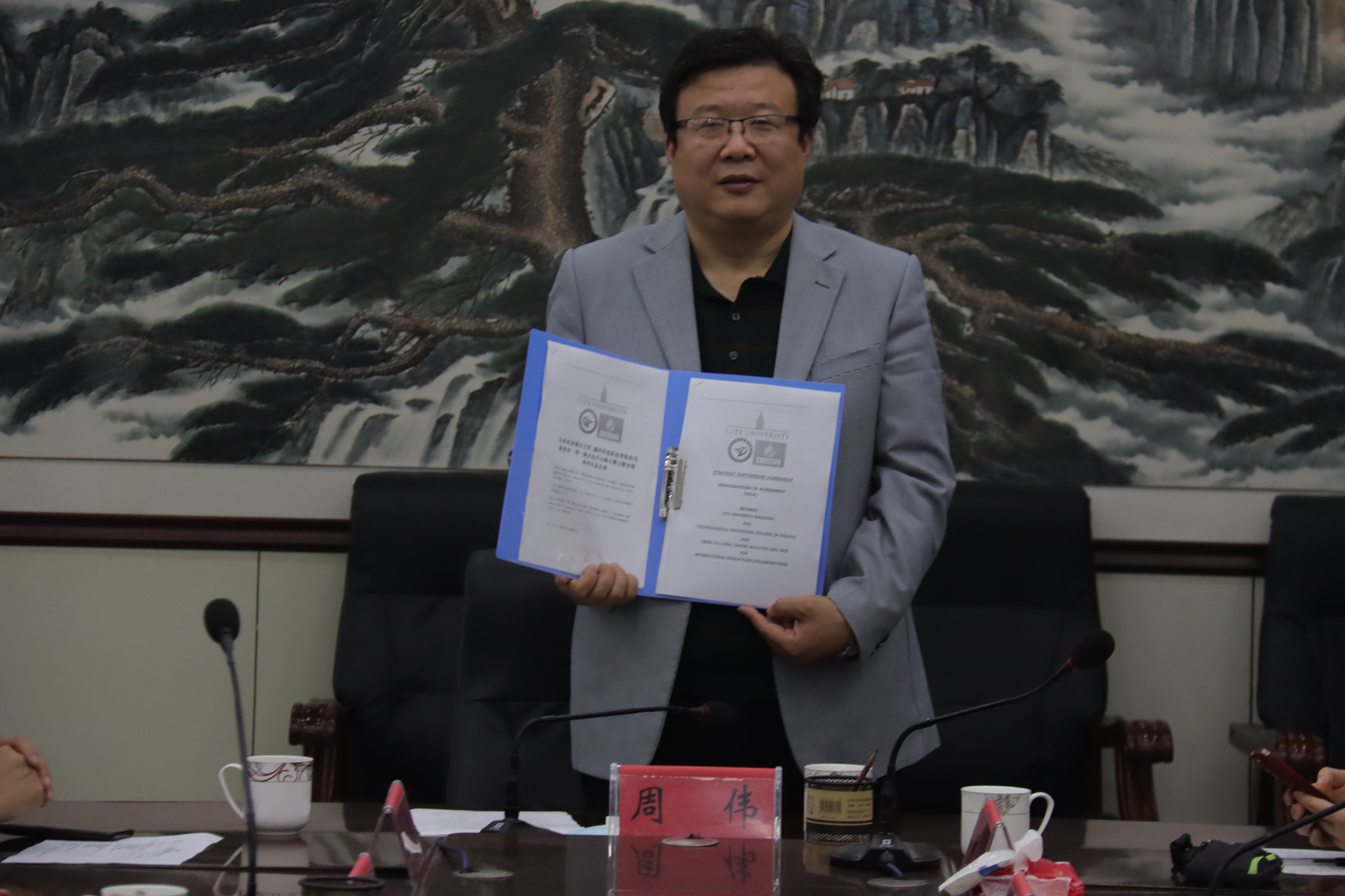 周伟在讲话中表示,学院十分重视与马来西亚城市大学的合作项目,希望双方签约后能够把合作项目做好做实,进一步开展实质性、有深度、有内涵的合作,在“一带一路”倡议背景下继续加强交流与合作。