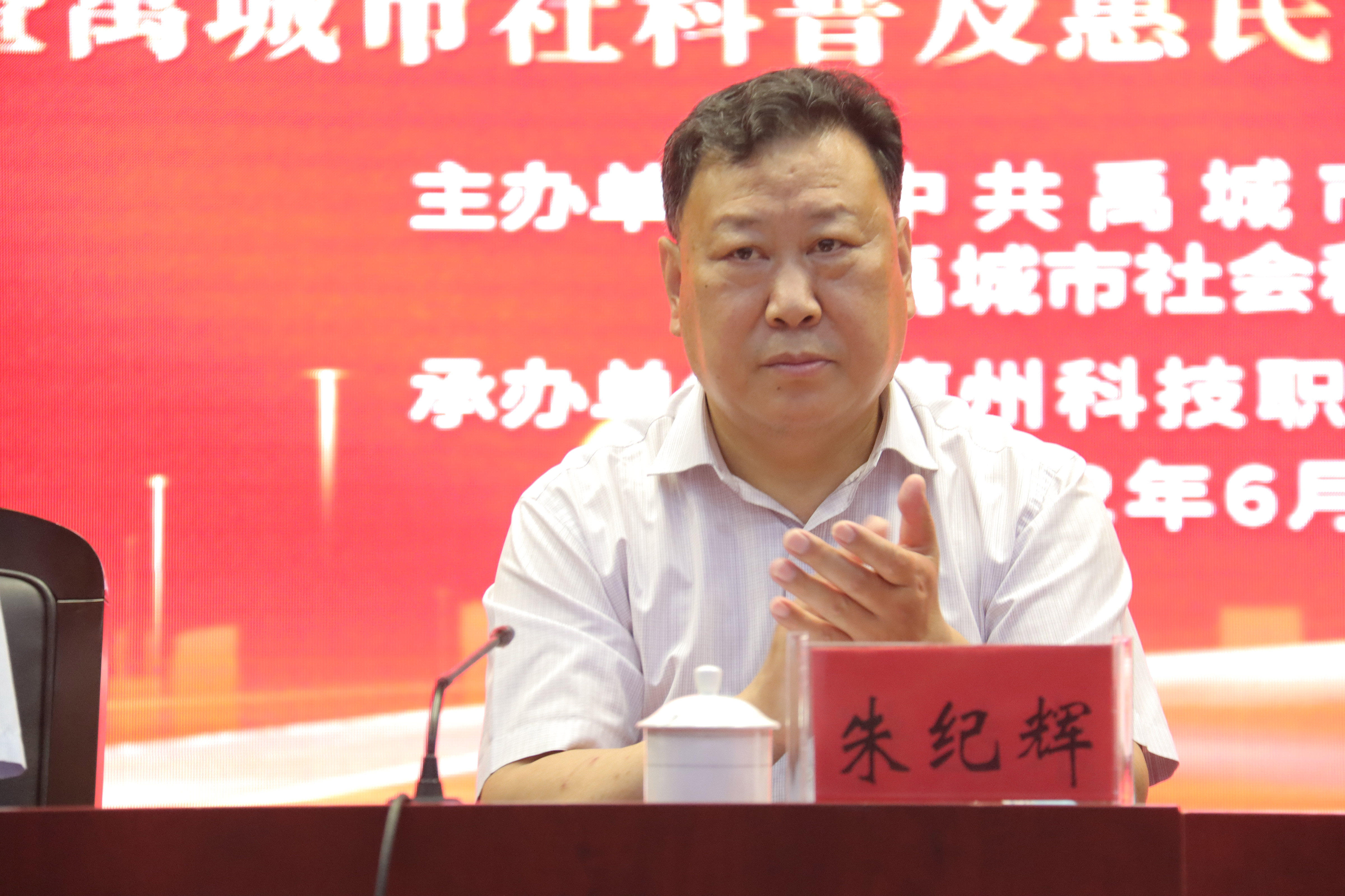 朱纪辉在致辞中,简要介绍了学院办学基本情况和教学科研方面工作成绩。他指出,学院自2015年11月获批“山东省社会科学普及教育基地”以来,认真按照德州市、禹城市社科联工作安排,充分发挥高校服务地方经济社会发展的优势,充分借助职业教育活动周等途径,利用线上、线下多种方式,积极开展社科普及教育活动。自办学以来,学院坚持“开放式办学,现代化管理,全方位育人”办学理念,遵循 “1+3+N”人才培养模式,推进“产学研、教学做创一体化”教学方法,不断推动教学科研工作深入开展。他表示,学院将以本次活动为契机,进一步发挥优势、突出特色,以最饱满的热情和最严谨的态度普及社会科学知识,为推动文化传播、提升社会公众素养作出不懈努力!