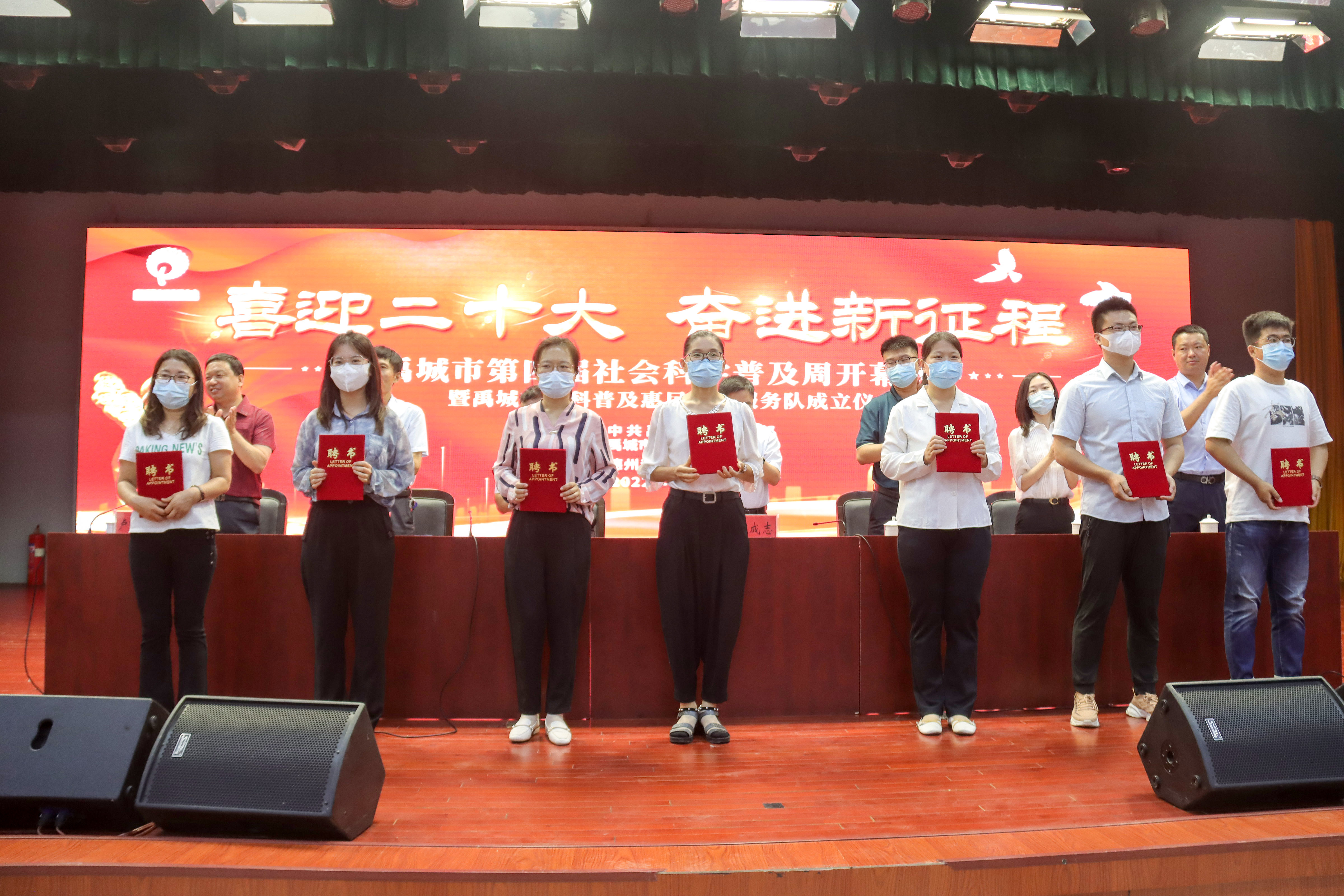 开幕式上,禹城市委宣传部常务副部长王晓力为禹城市社科普及惠民志愿服务队授旗;禹城市委宣传部副部长吴境轩宣读了《关于组建禹城市社科普及惠民志愿服务队的决定》;全体与会领导还为禹城市社科普及惠民志愿者颁发了聘书。