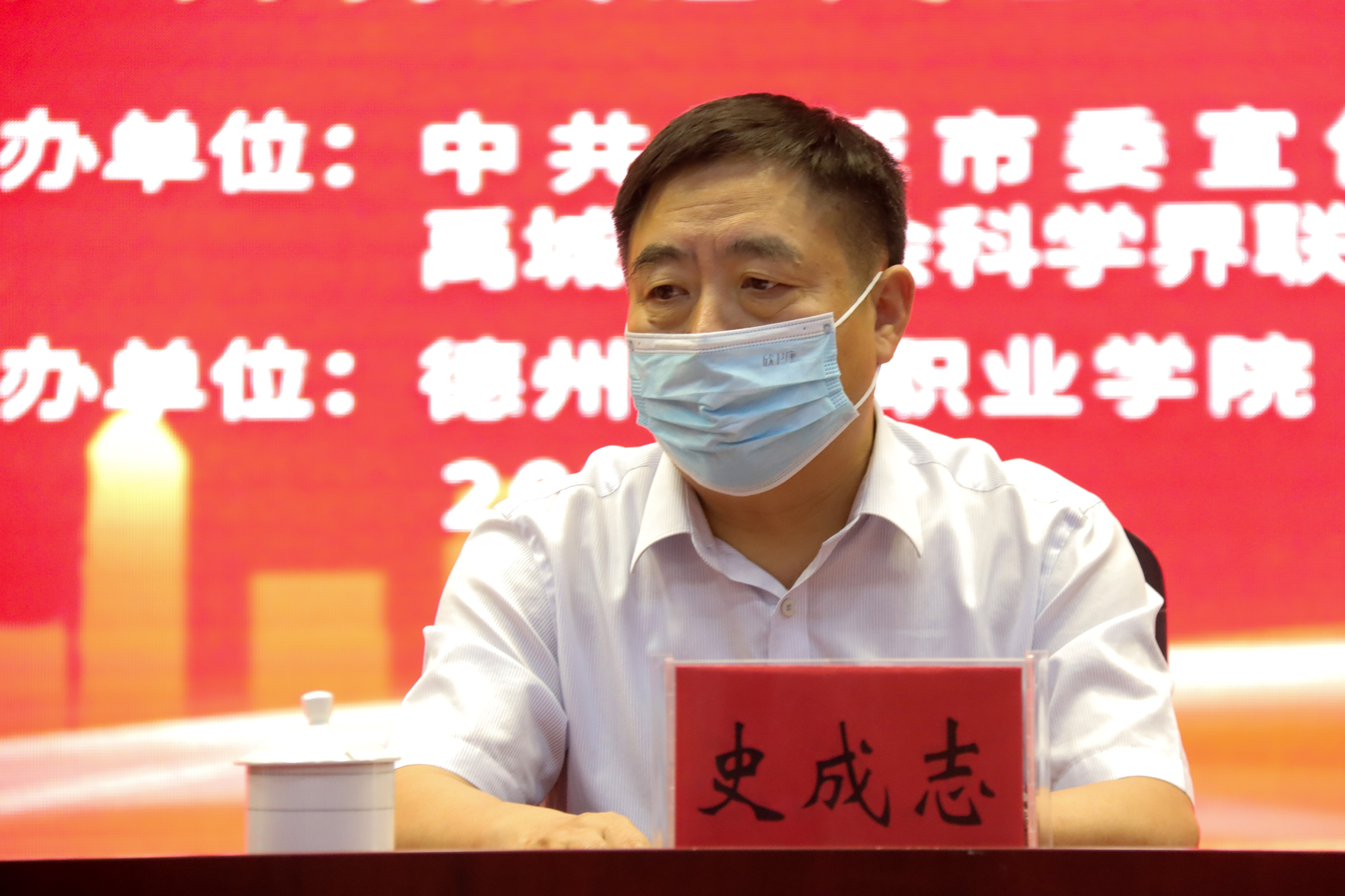 史成志在讲话中,对禹城市及学院的社科普及工作给予了充分肯定。他指出,哲学社会科学是人们认识世界、改造世界的重要工具,是推动历史进步和社会发展的重要力量,是富民兴邦、维系社会稳定的重要纽带,是复兴中华、传承文明的重要手段。社科普及周活动的举办,在弘扬主旋律、传播正能量及提高我市干部群众的人文素养发挥了重要作用,为哲学社会科学知识进一步走出书斋、走出象牙塔,来到群众身边搭建了重要平台。他衷心希望社会各界人士要以此次活动为契机,突出活动主题,精心组织,彰显特色,把普及周活动与学习贯彻习近平总书记系列重要讲话精神结合起来,与省、市的中心工作结合起来,与共享发展成果、喜迎党的二十大胜利召开结合起来,与为广大人民群众解疑释惑、满足广大群众急迫的精神文化需求结合起来,不断提高社科普及工作的吸引力和影响力。