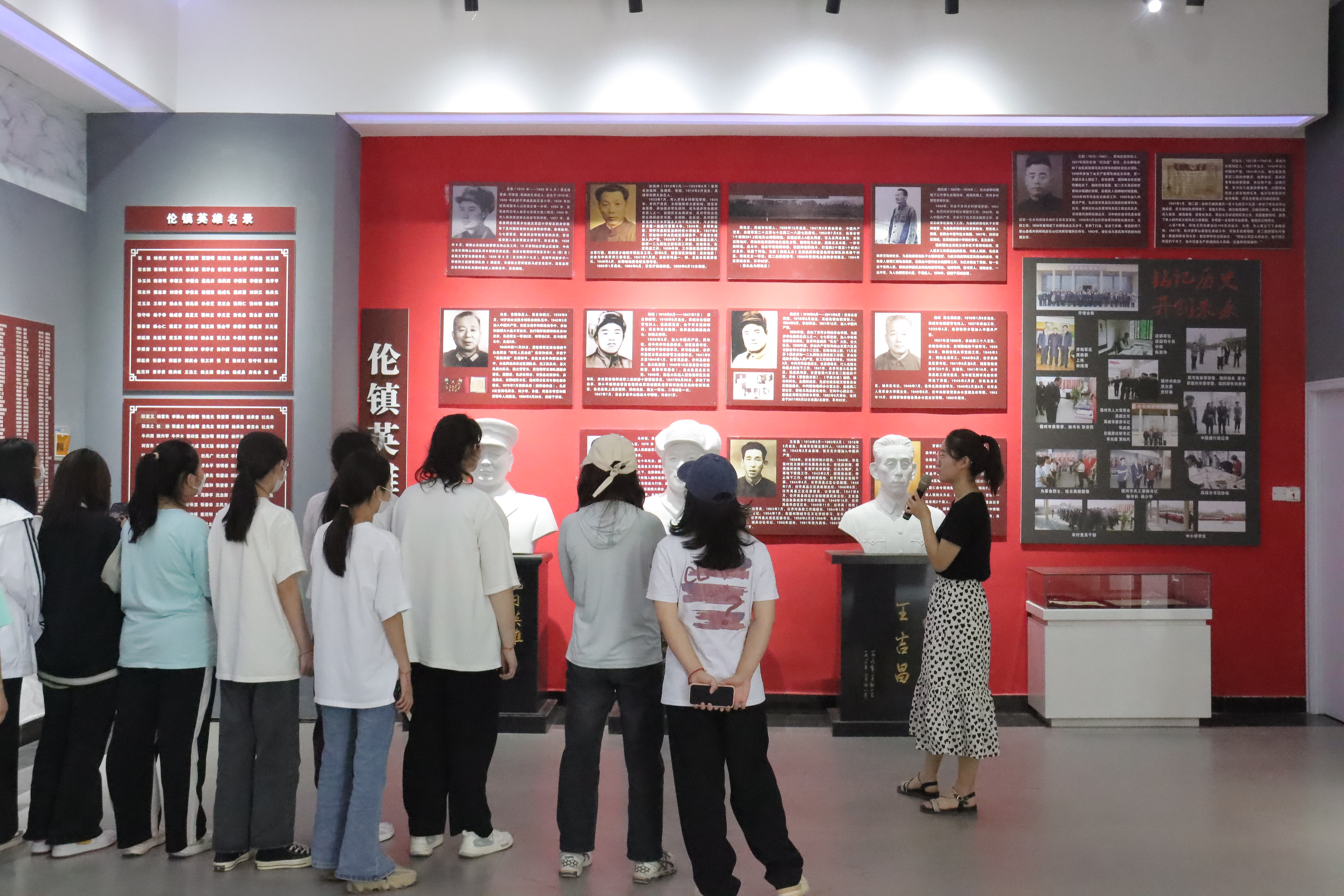 在抗战纪念馆石碑前,讲解员向学生们介绍了齐禹抗战纪念馆修建背景和历程。主馆内,在讲解员的引导下,一幅幅惊心动魄的战争画面,一件件保存完整的珍贵实物,一段段可歌可泣的英烈故事,通过齐禹抗战大事记、齐禹抗战历程、图说抗战故事、烈士名录等14个部分内容,向学生们生动地讲述了齐禹人民8年抗战历史和抗战英烈的动人事迹。