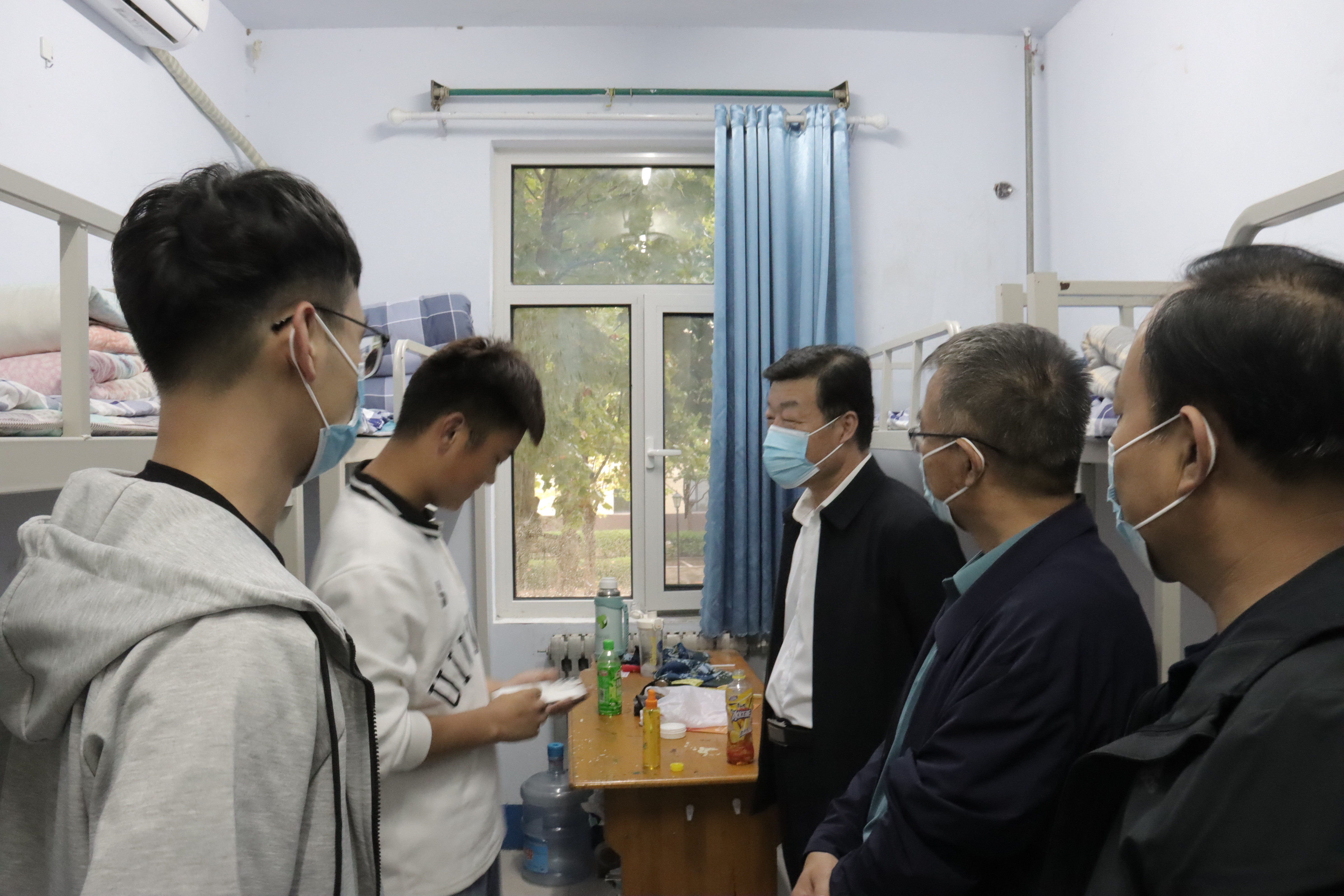 刘继泉十分关心应急保障、安全设施管理情况,来到消防控制室、值班室,了解工作人员24小时值班值守情况,特别是水电暖应急维修、学生生活设施保障、消防设施定期查验工作,要求公寓管理中心及各二级学院值班人员务必提高重视、加强日常查验,确保各项设施保持正常运转状态,切实将各项安全措施落到实处。