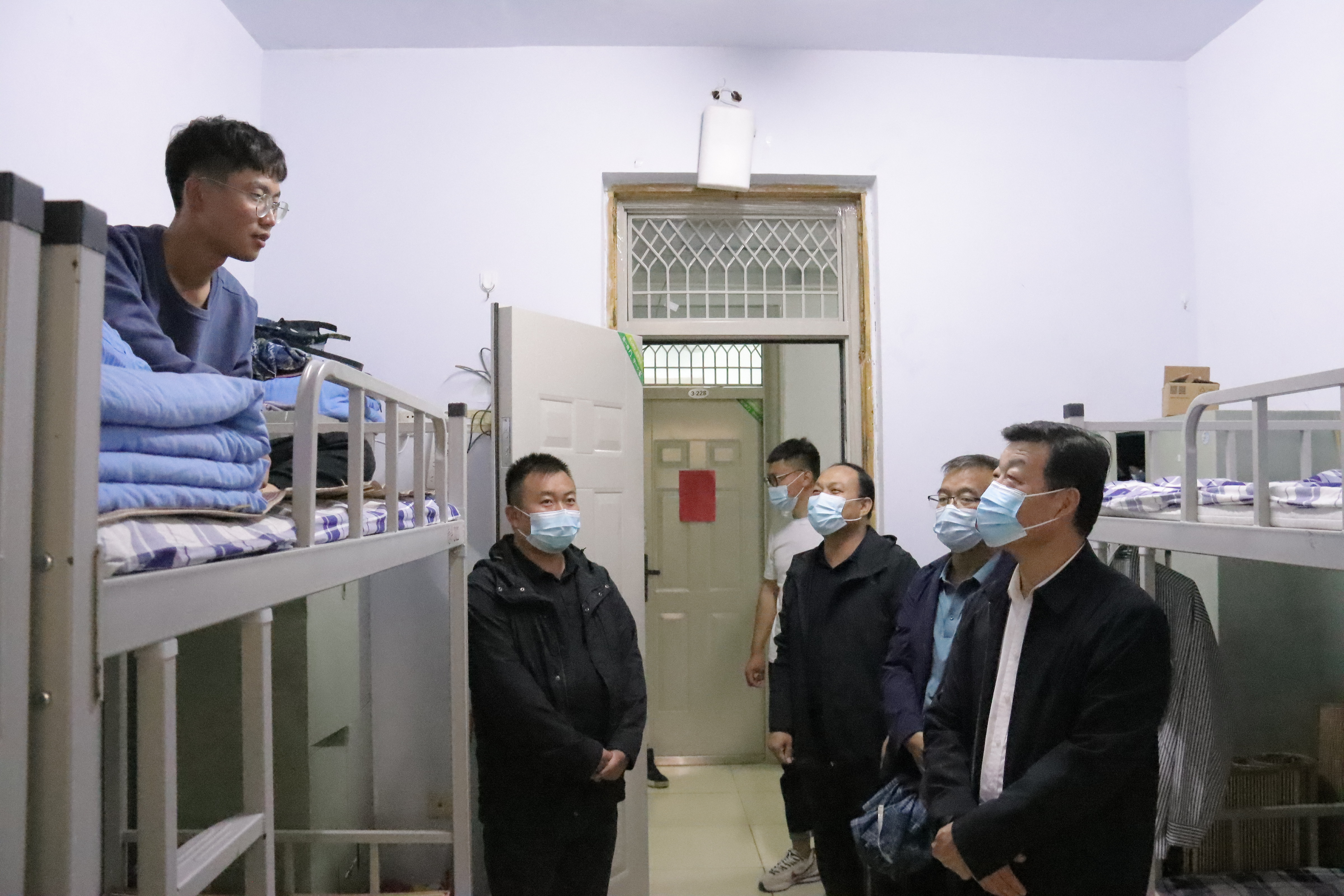刘继泉先后到3号、1号学生公寓,查阅24小时值班记录、监控设备运行状况、疫情防控登记台账和消防设施检查登记情况,询问公寓管理人员日常值班管理情况和假期工作安排,叮嘱值班人员严格按照值班制度、规程要求,履职尽责、全心服务,确保公寓管理规范、学生安全责任落实。刘继泉来到本科教育学院学生宿舍,与新入学的2022级新生交流,了解他们的住宿、生活、学习情况,希望他们尽快适应环境、养成良好习惯,更好投入到大学生活中。