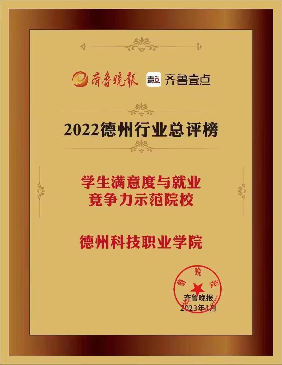 日前,齐鲁晚报“2022年德州行业总评榜”评选揭晓,学院获评2022年德州行业总评榜“学生满意度与就业竞争力示范院校”称号。