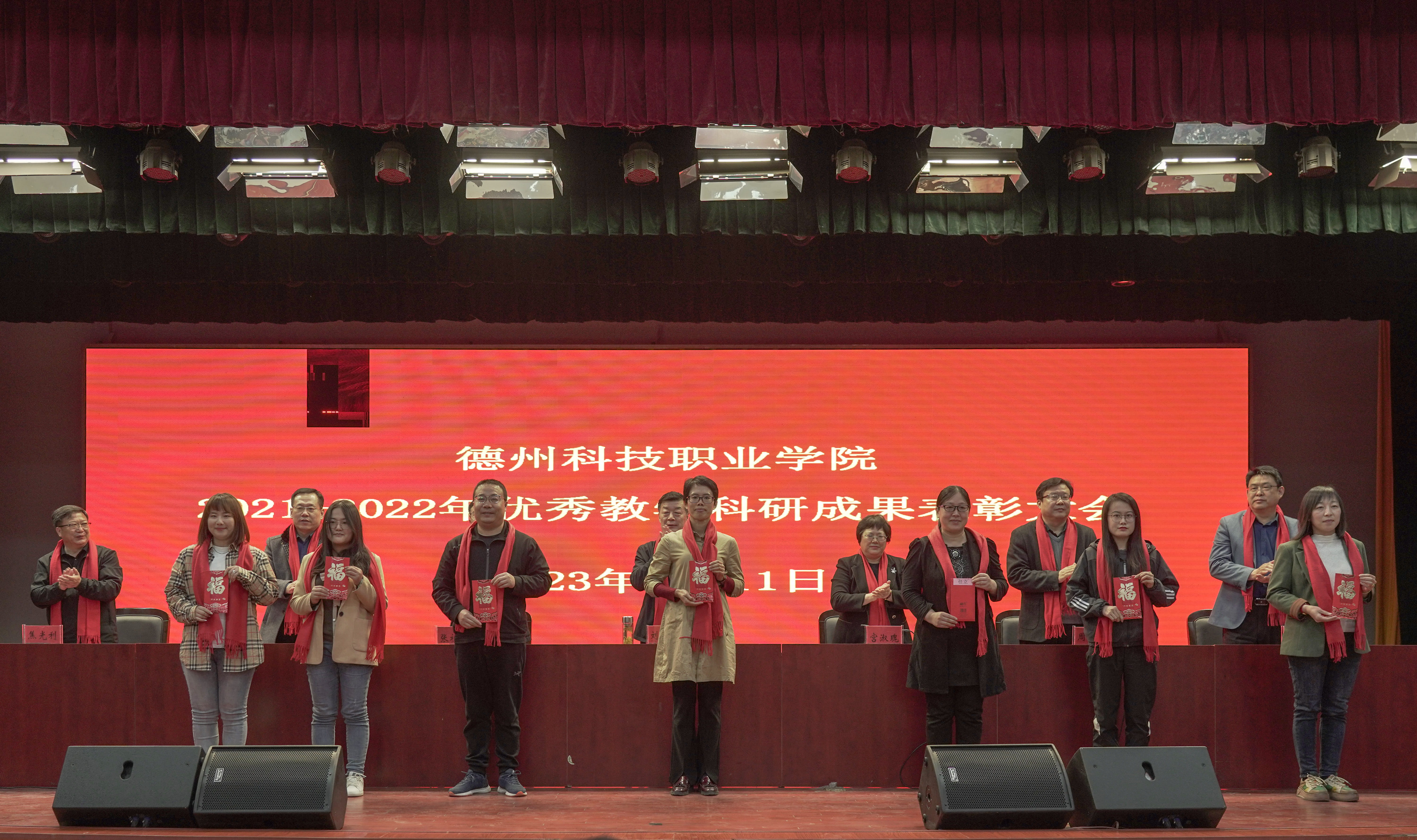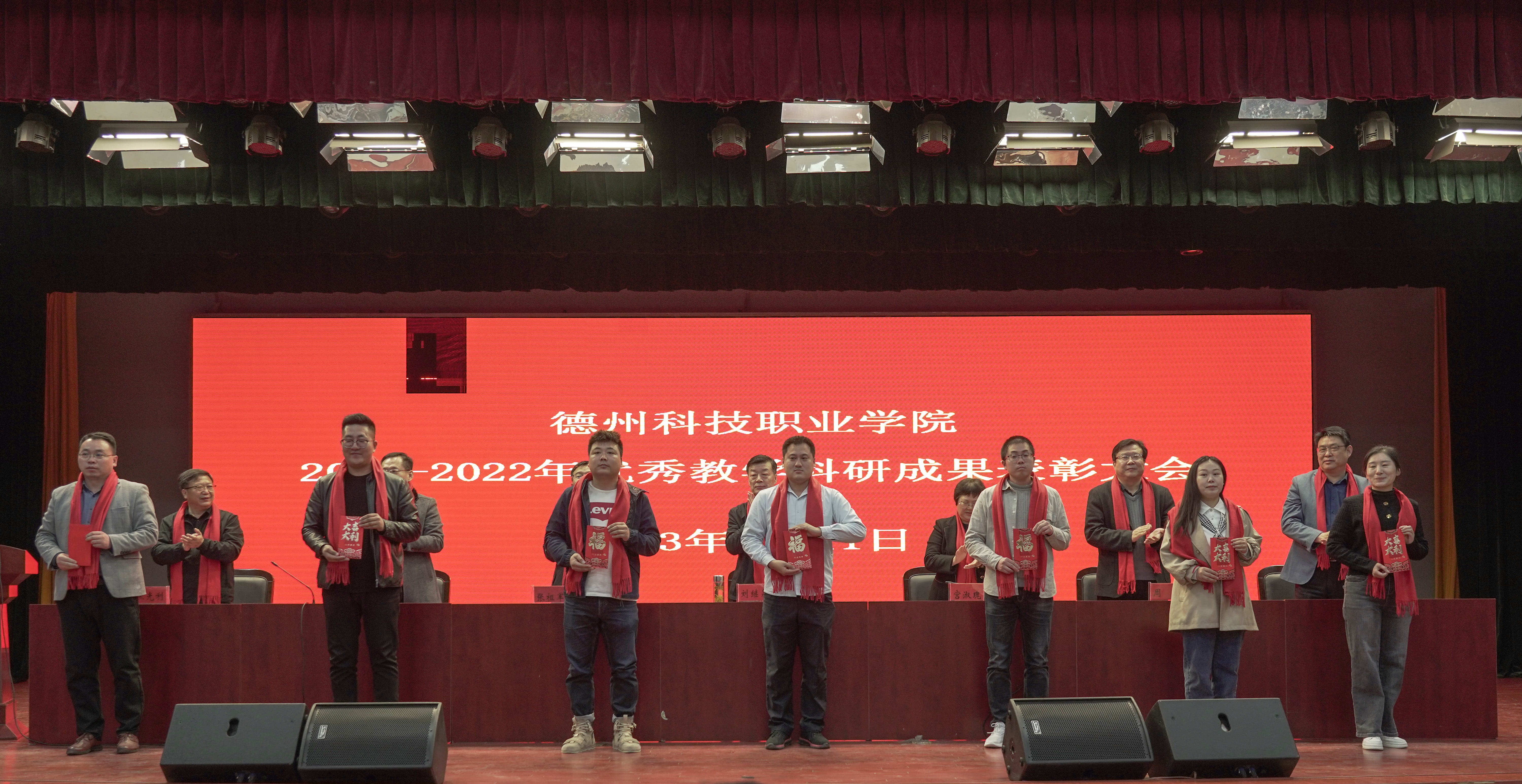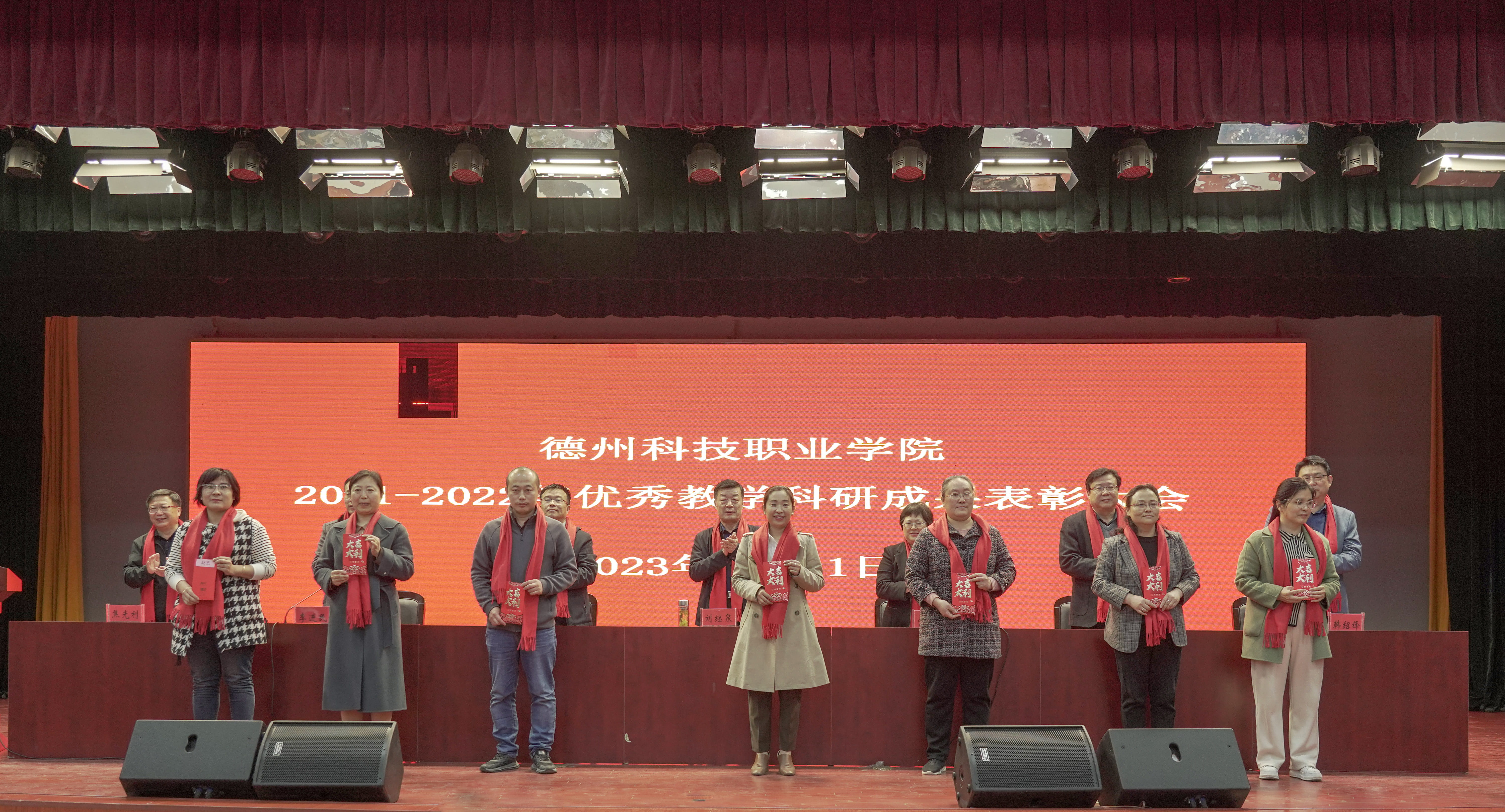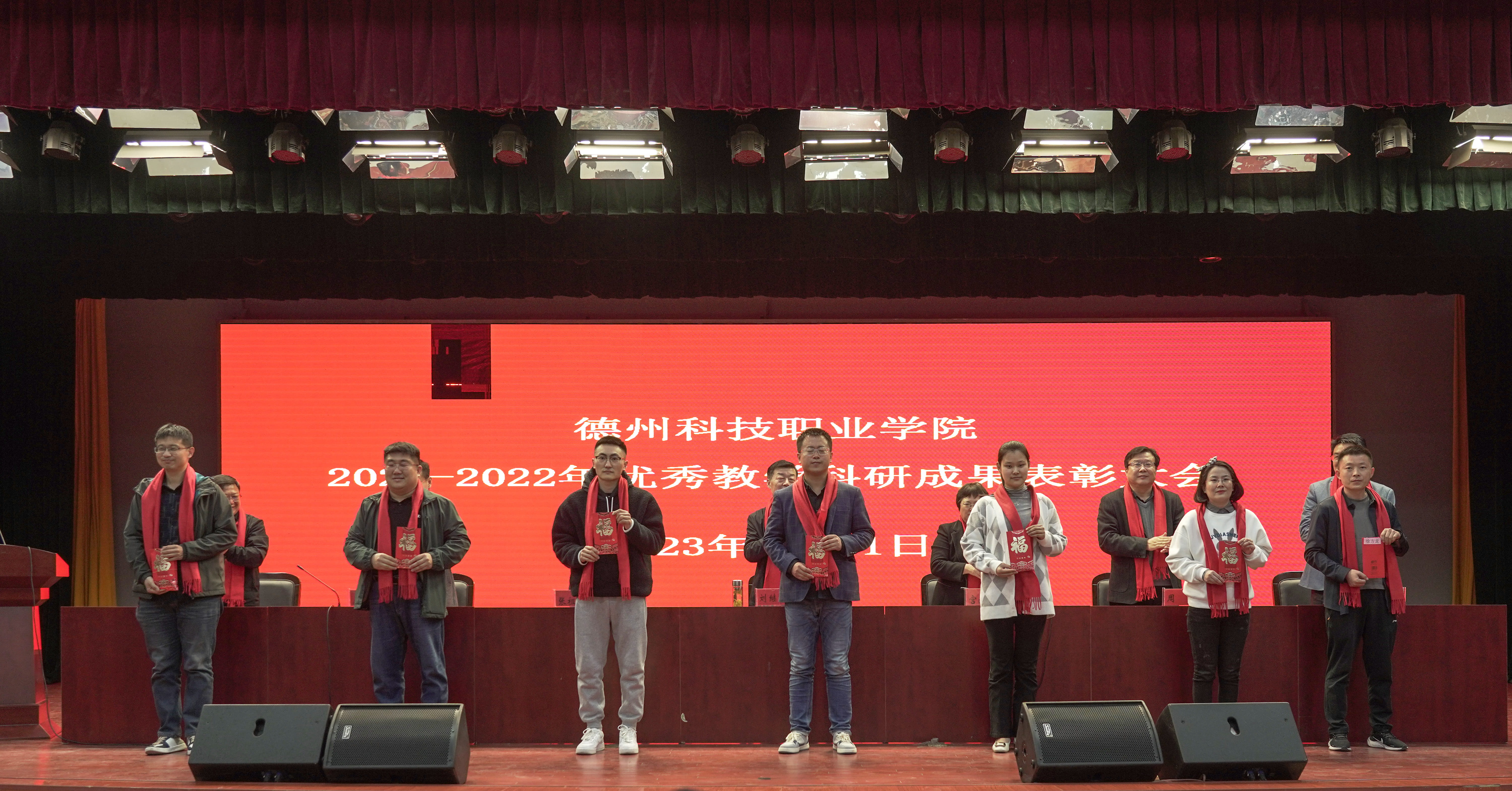 学院党委委员、副院长李进民宣读了《德州科技职业学院关于2021-2022年优秀教学科研成果的表彰决定》。出席表彰大会领导为教科研获奖的八组教师进行了表彰颁奖。