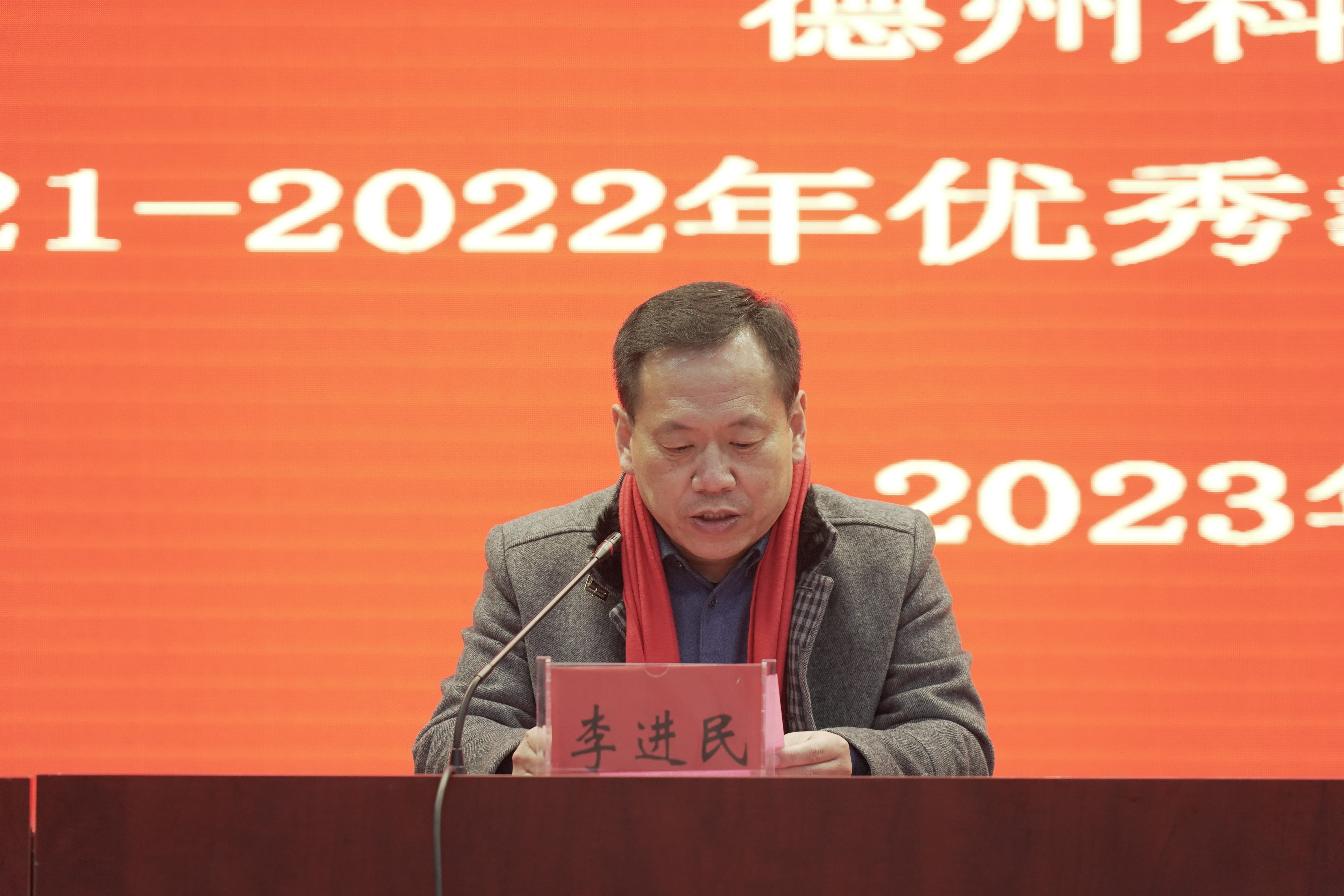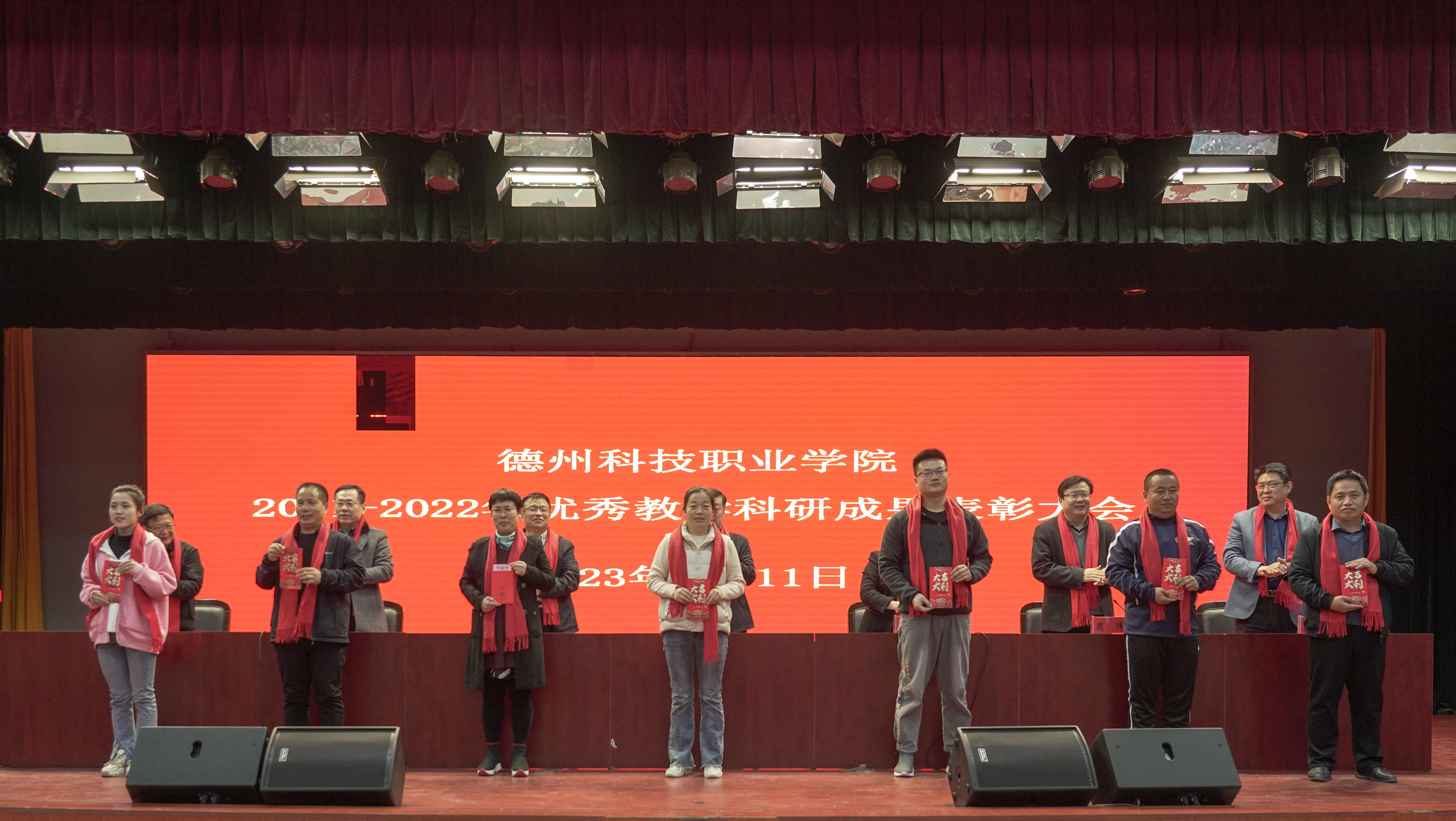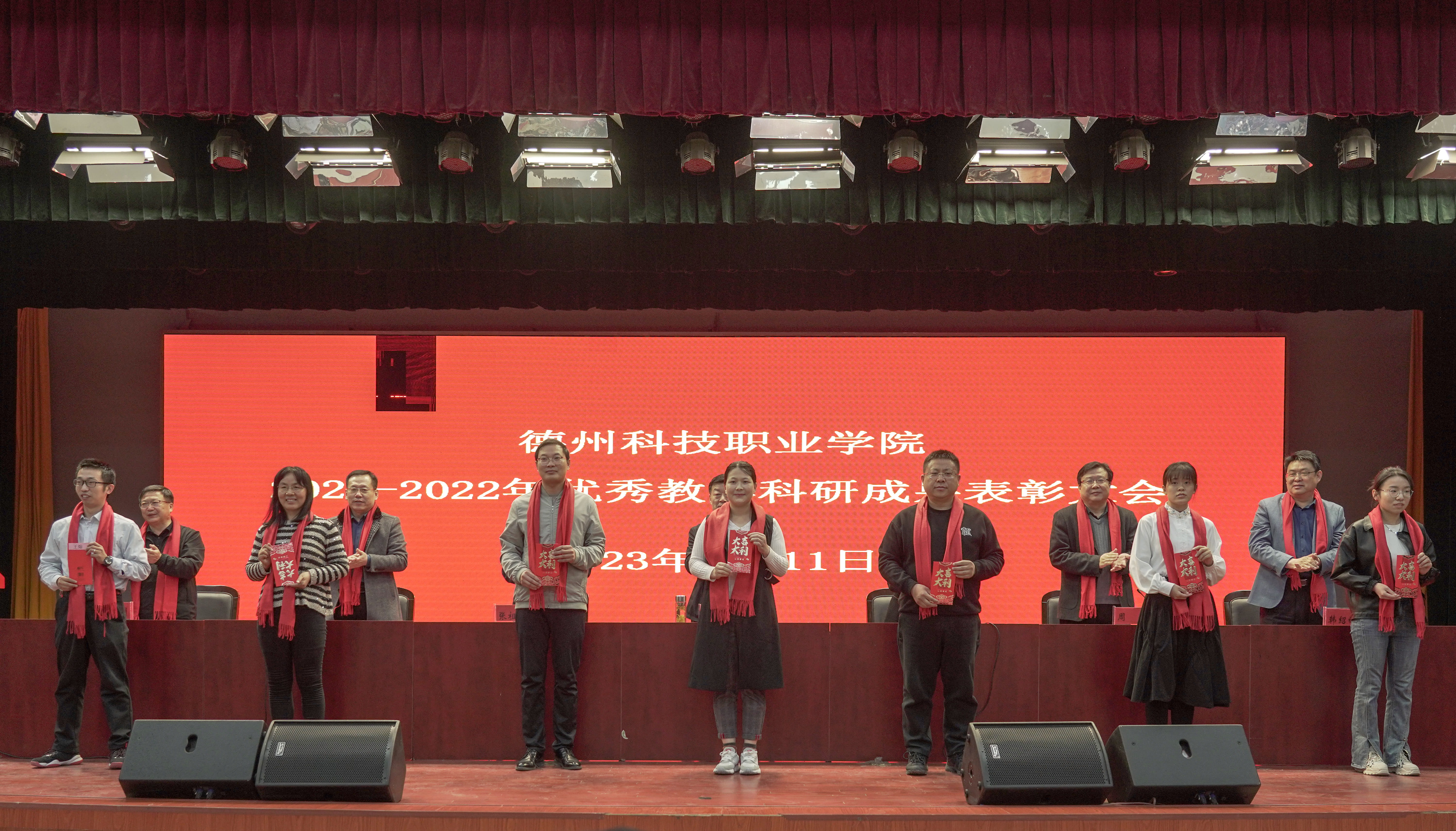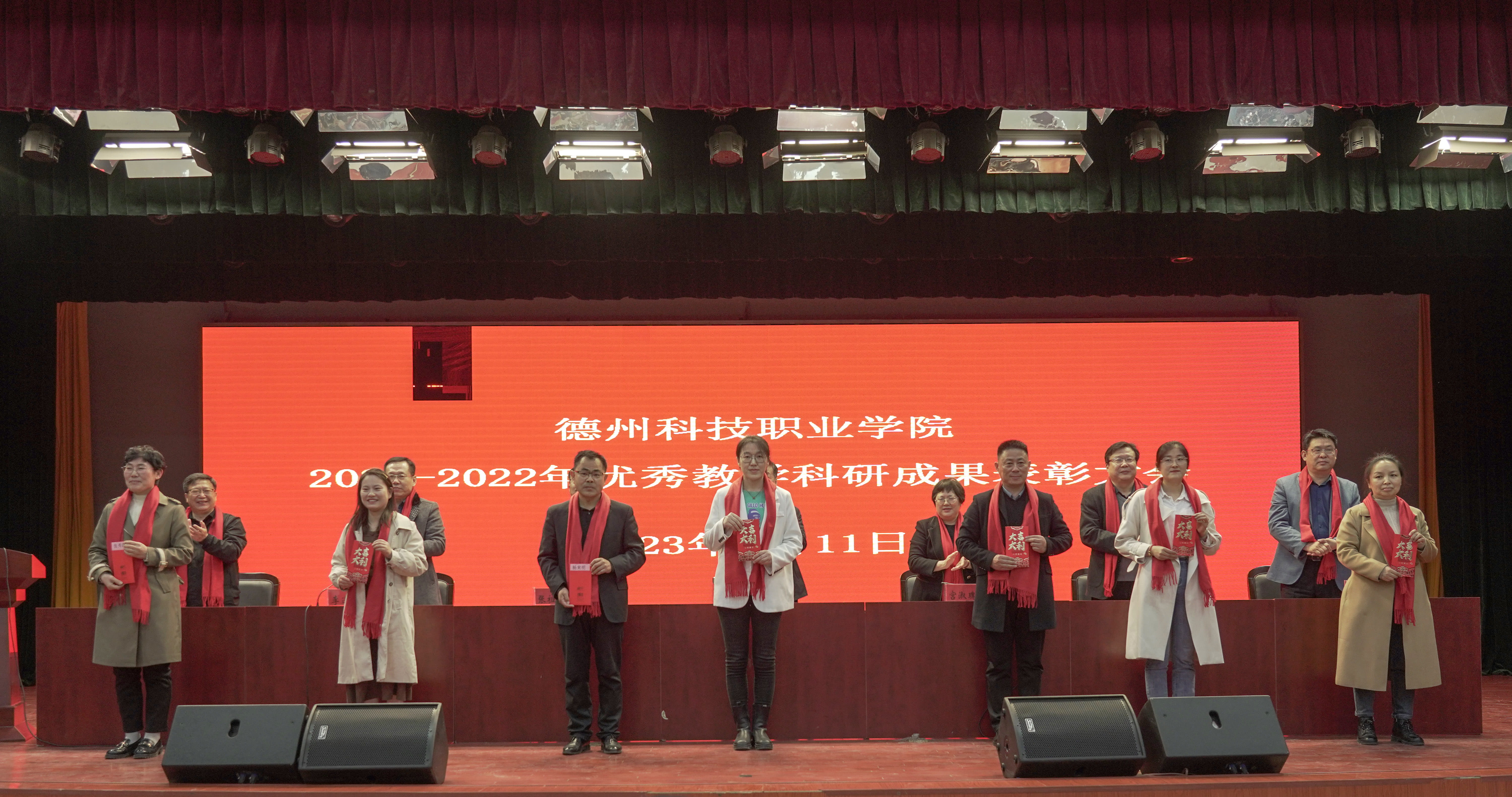 学院党委委员、副院长李进民宣读了《德州科技职业学院关于2021-2022年优秀教学科研成果的表彰决定》。出席表彰大会领导为教科研获奖的八组教师进行了表彰颁奖。
