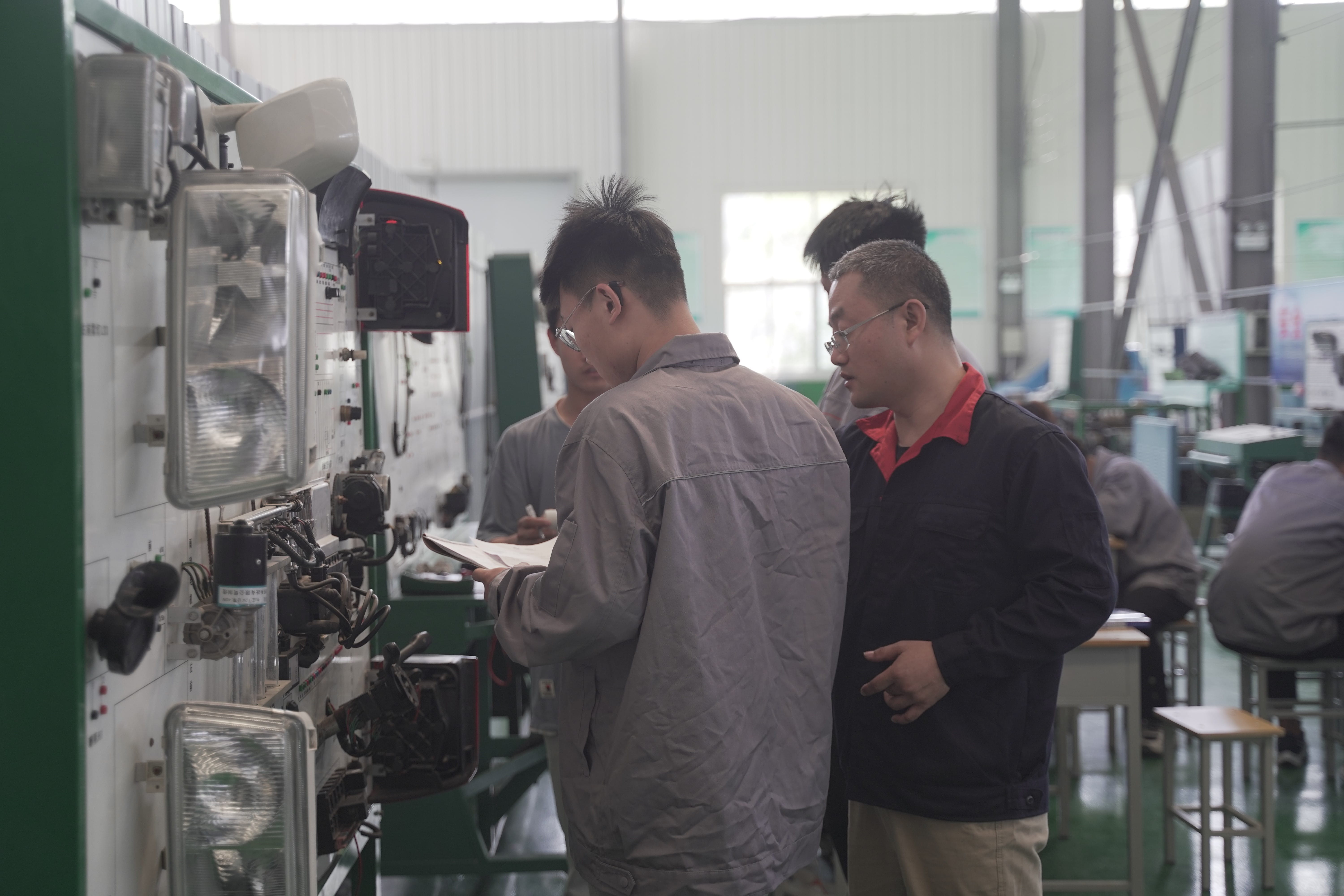 在智能航空学院汽车实训车间,宫淑瑰随机听取了该院李冰岳老师所讲授的《汽车转向灯控制电路诊断》一课。在授课过程中,授课教师围绕“汽车转向灯控制电路诊断与维修”这一教学主题,向2021级汽车制造专业学生发放任务工单,立足汽车制造专业的人才培养方案要求,利用“灯光系统示教板”和“全车电器实训台”,引导学生理解汽车转向灯的操作流程以及对转向灯控制电路核心部件的认知,创新了教学方式、丰富了授课内容。同时,授课教师采取师生互动、小组合作等形式,融入课程思政、就业创业、工匠精神与职业道德相关内容,使学生们在分组讨论、实践操作中,逐一掌握汽车转向控制电路与危险报警灯控制电路发生故障的解决办法,达到学以致用、学思结合的效果,从而完成教学目标任务。