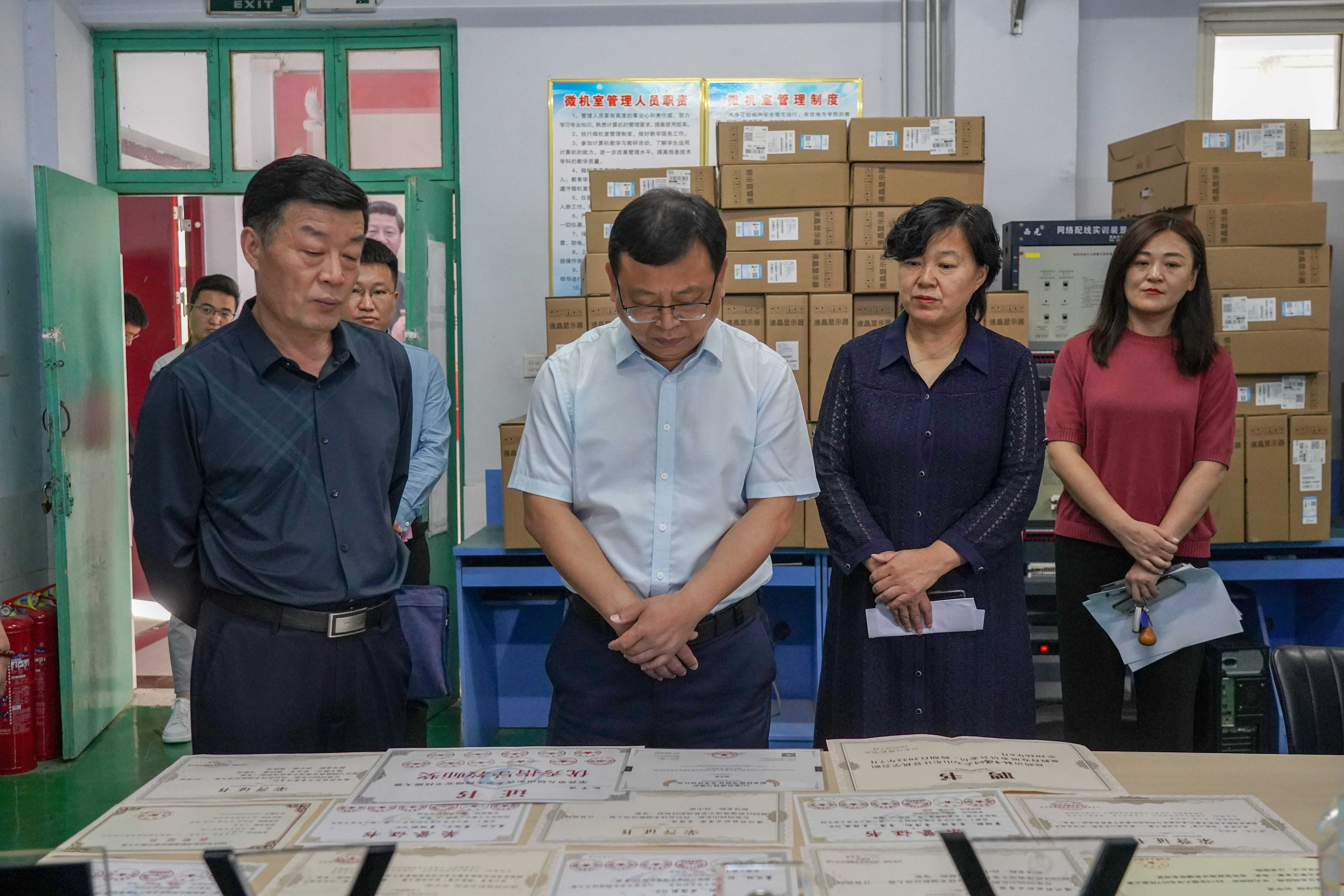 揭牌仪式结束后,参会领导一同参观了学院大禹筑梦工作室、软件开发工作室、劳模创新工作室和工匠创新工作室。