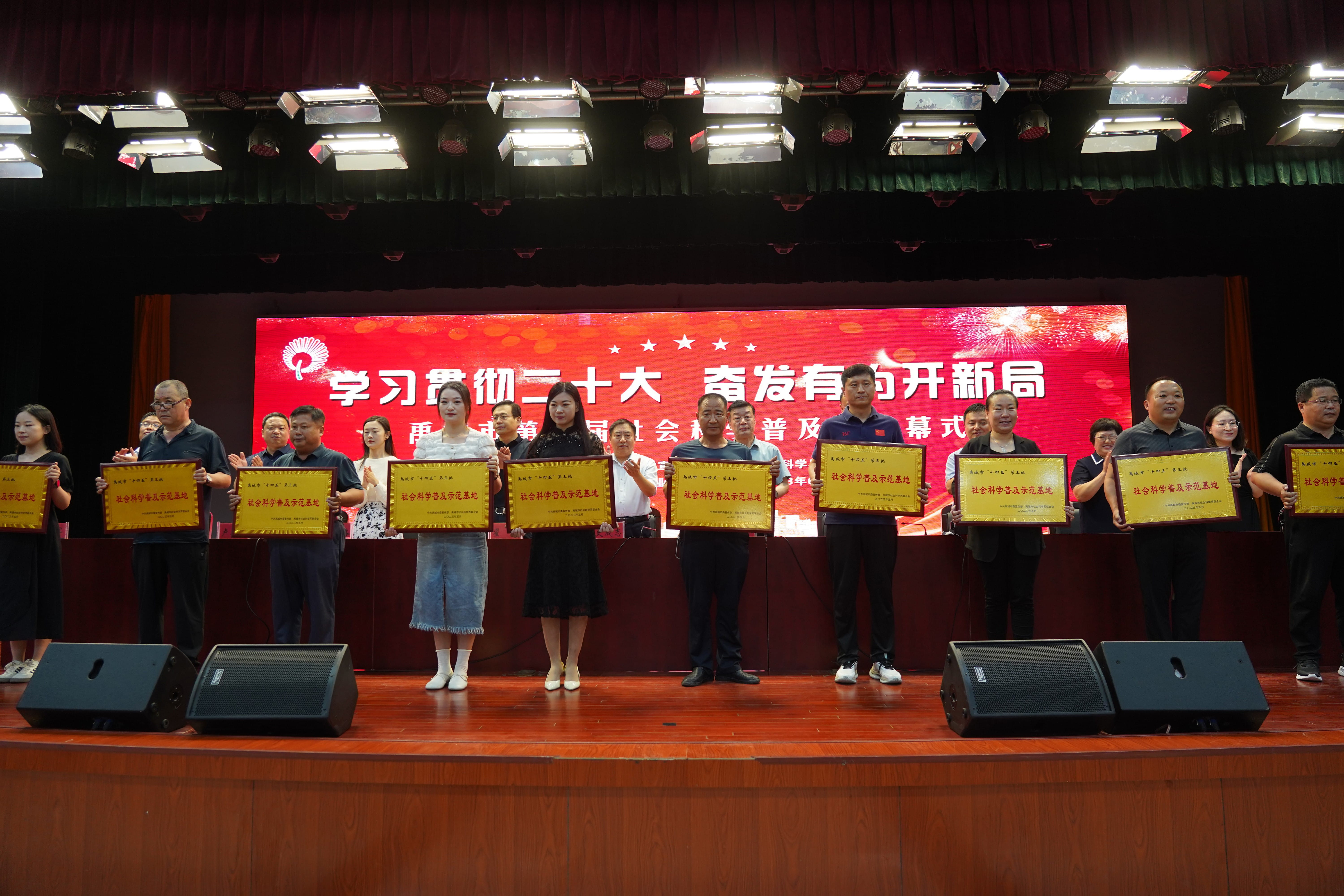 开幕式上,李建宣读了《关于表彰禹城市第一批社科普及工作先进单位和先进个人的决定》;赵帅宣读了《关于公布“十四五”第三批禹城市社会科学普及示范单位的通知》;刘小文宣读了《关于同意德州科技职业学院社会科学界联合会成为德州市社科联团体会员的批复》;全体与会领导还为获奖单位和先进个人进行颁奖。