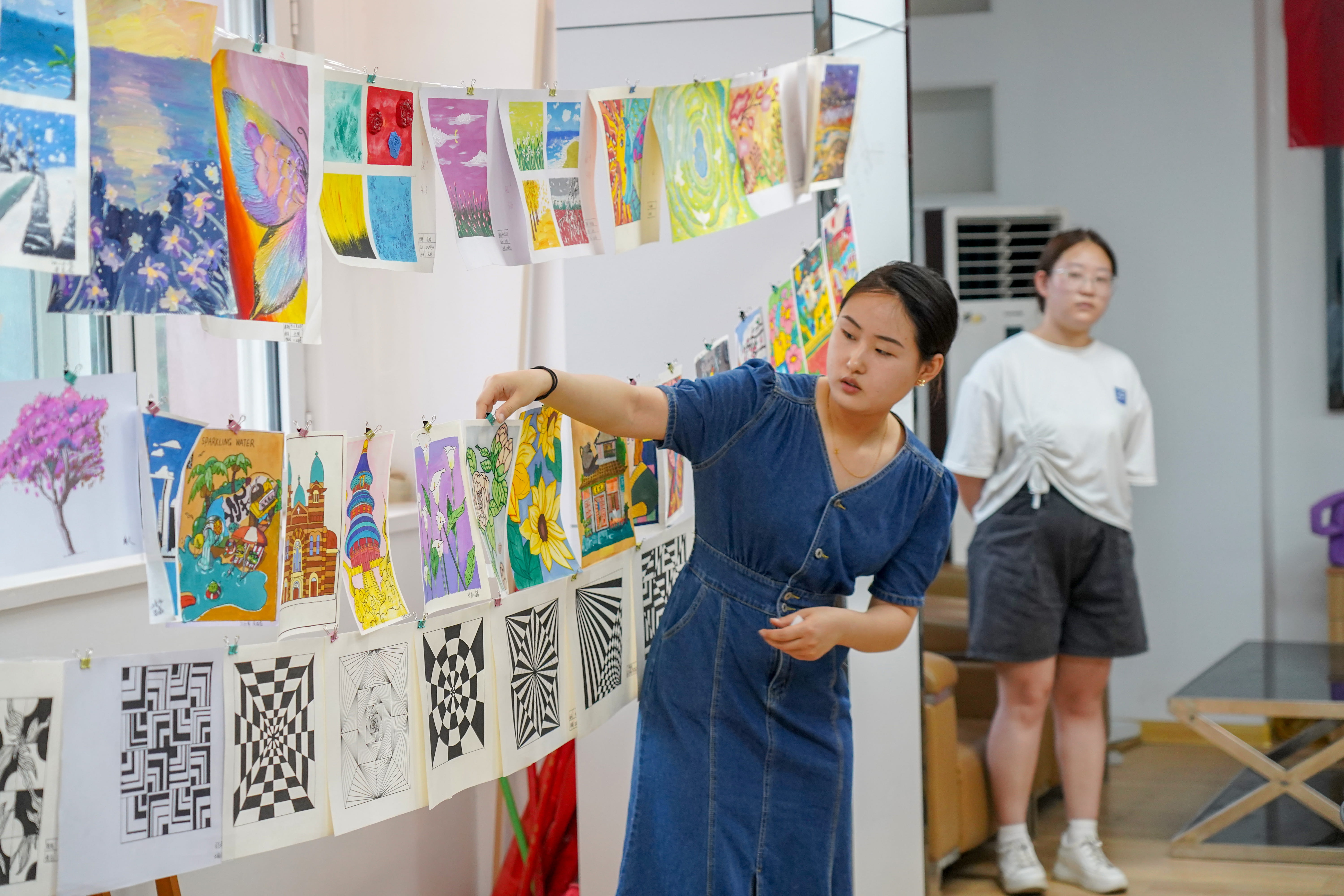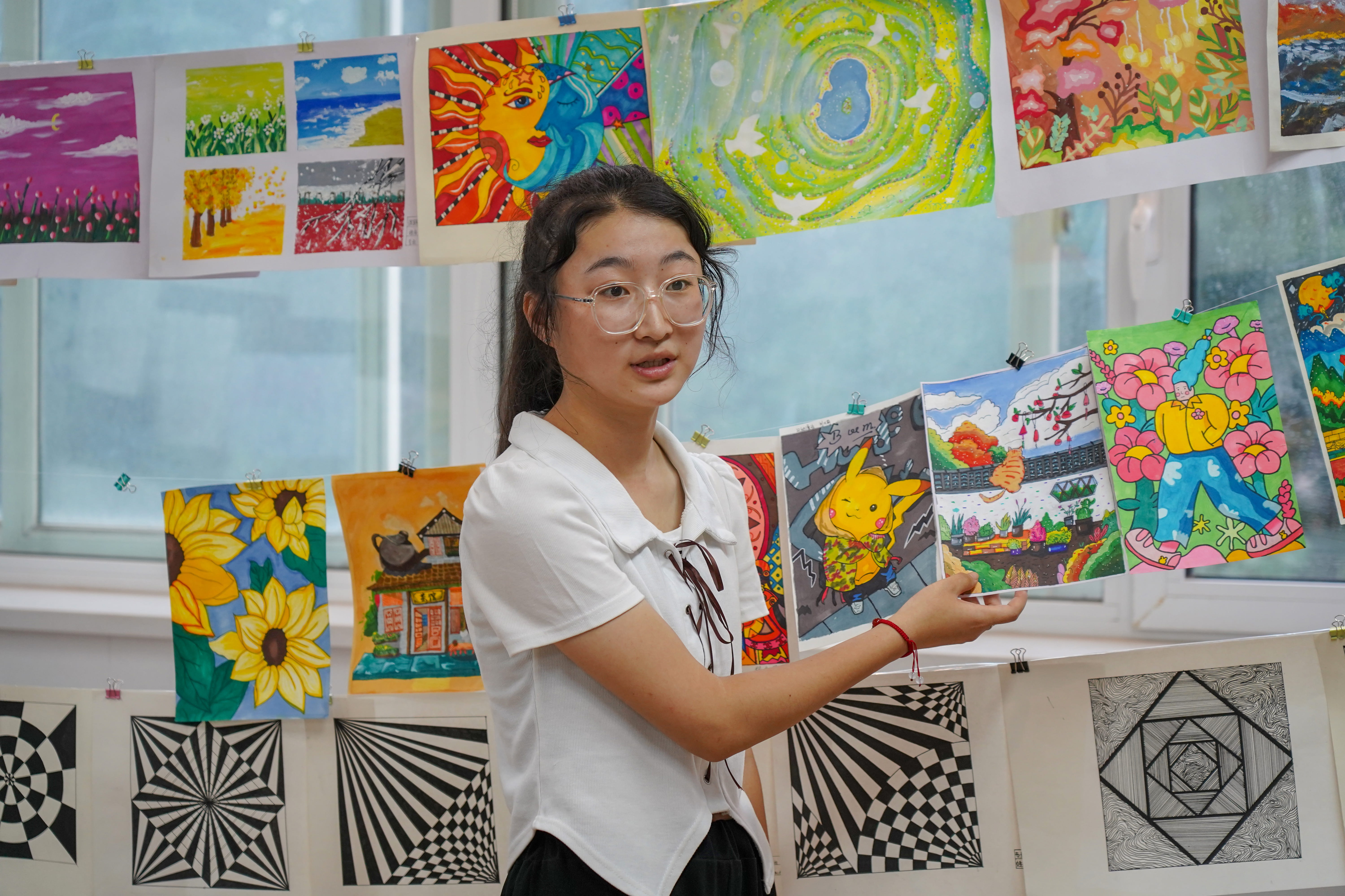 展览以“美在心间·创意创新”为主题,共分为手绘插画、平面构成、立体构成、色彩构成四个展区。一幅幅意蕴唯美的手绘插画、一个个独具创意的平面设计、一座座制作精致的立体摆件……色彩与造型完美融合,空间与时间相互交织,每一处星星点点的设计、每一笔细枝末节的勾勒,都凝聚着学生的创新元素和思路理念,倾注着创作者的思考和创意,充分展示了学生们对不同主题的敏锐观察、深入挖掘、积极创造的能力,以及用艺术手法表现对生活热爱的青年风采。
