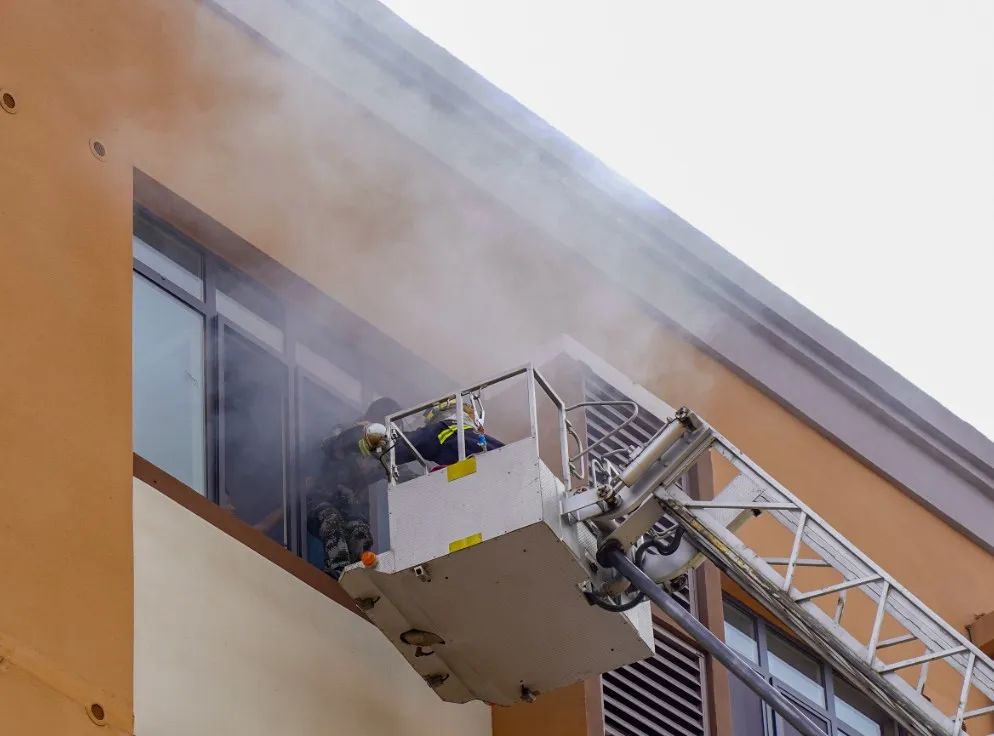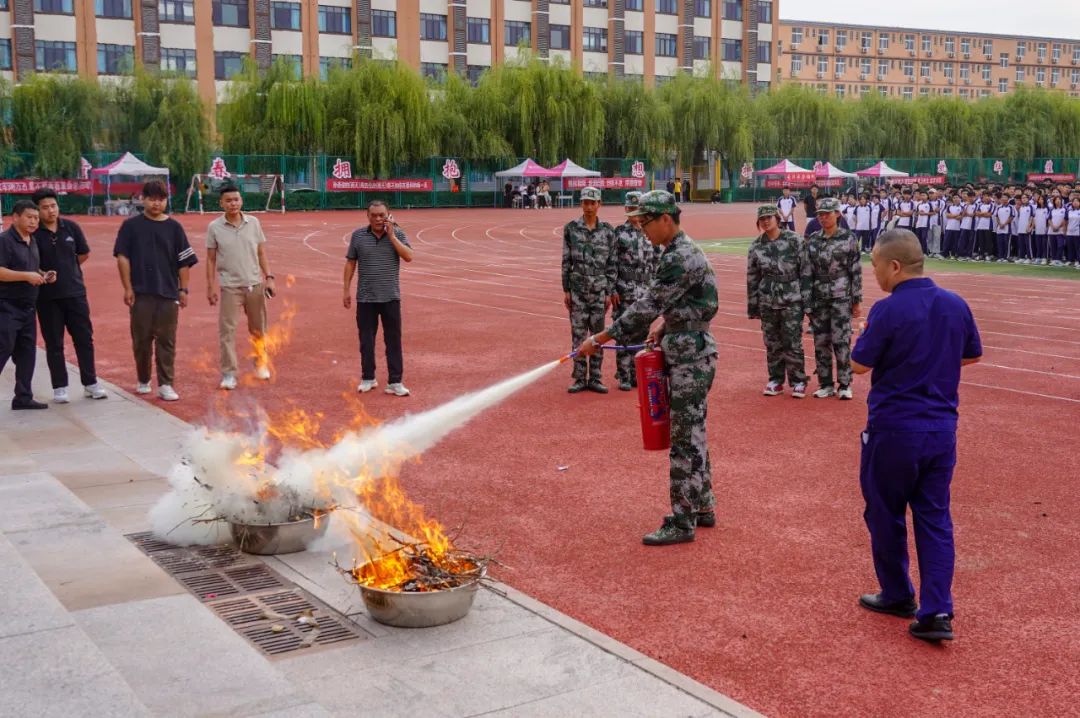 随着消防警报的拉响,宫淑瑰宣布消防疏散演练正式开始。 按照事先制定的火灾疏散救援综合演练实施方案,参演人员共分灭火组、救援组、救护组、疏散组、警戒组等。演练开始后,工作人员点燃烟雾弹,模拟宿舍楼内发生火情。辅导员在接到学生报告后立即赶往事故现场,并通知学生科长及系主任,通讯联络员第一时间报告主要负责人,总指挥立即启动消防应急预案;接到命令后,负责老师迅速组织学生进入紧急疏散状态,按照应急疏散演练方案设定逃生路线,捂住口鼻,低姿快速、有序逃离火灾现场;救援组观察好环境后,迅速在建筑外围架设云梯,搭建救生通道,成功营救楼内“被困学生”;救护救援组将楼内受伤人员抬上担架进行模拟送医治疗,并展开紧急处理和救治。整个过程有条不紊,各小组分工明确、紧密配合、相互协作,顺利完成疏散演练任务。 为巩固演练实践效果,赵毅在体育场还现场指导了2023级新生正确使用灭火器进行灭火实战操作,提高学生的消防应急能力。 秋季消防疏散演练暨消防安全教育活动的圆满完成,不仅增强了学院师生们的消防安全意识,也提高了自防自救、应对突发事件的能力,为有效预防消防事故打下了基础。下一步,学院将持续开展形式多样的消防安全教育活动,不断夯实安全根基,筑牢校园消防安全防线。 禹城市消防大队消防官兵、学院义务消防员,以及各二级院系学生科长、辅导员、全体2023级新生参加活动。
