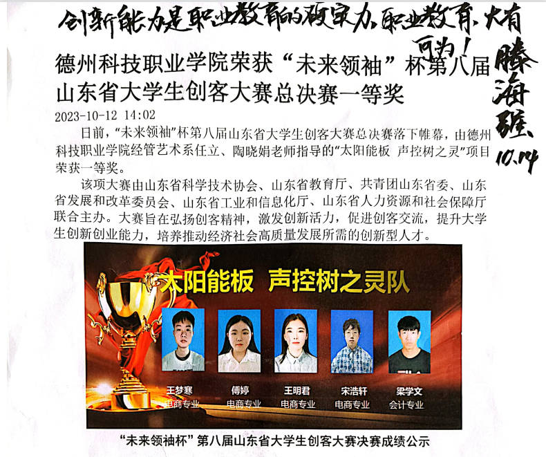 禹城市委书记滕海强对学院大学生技能比赛获奖作批示