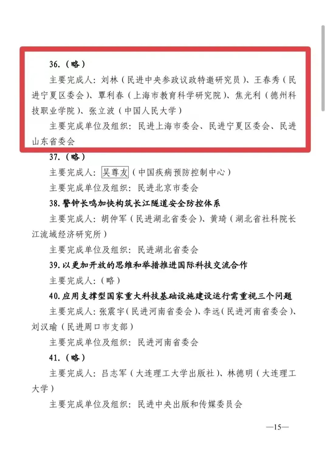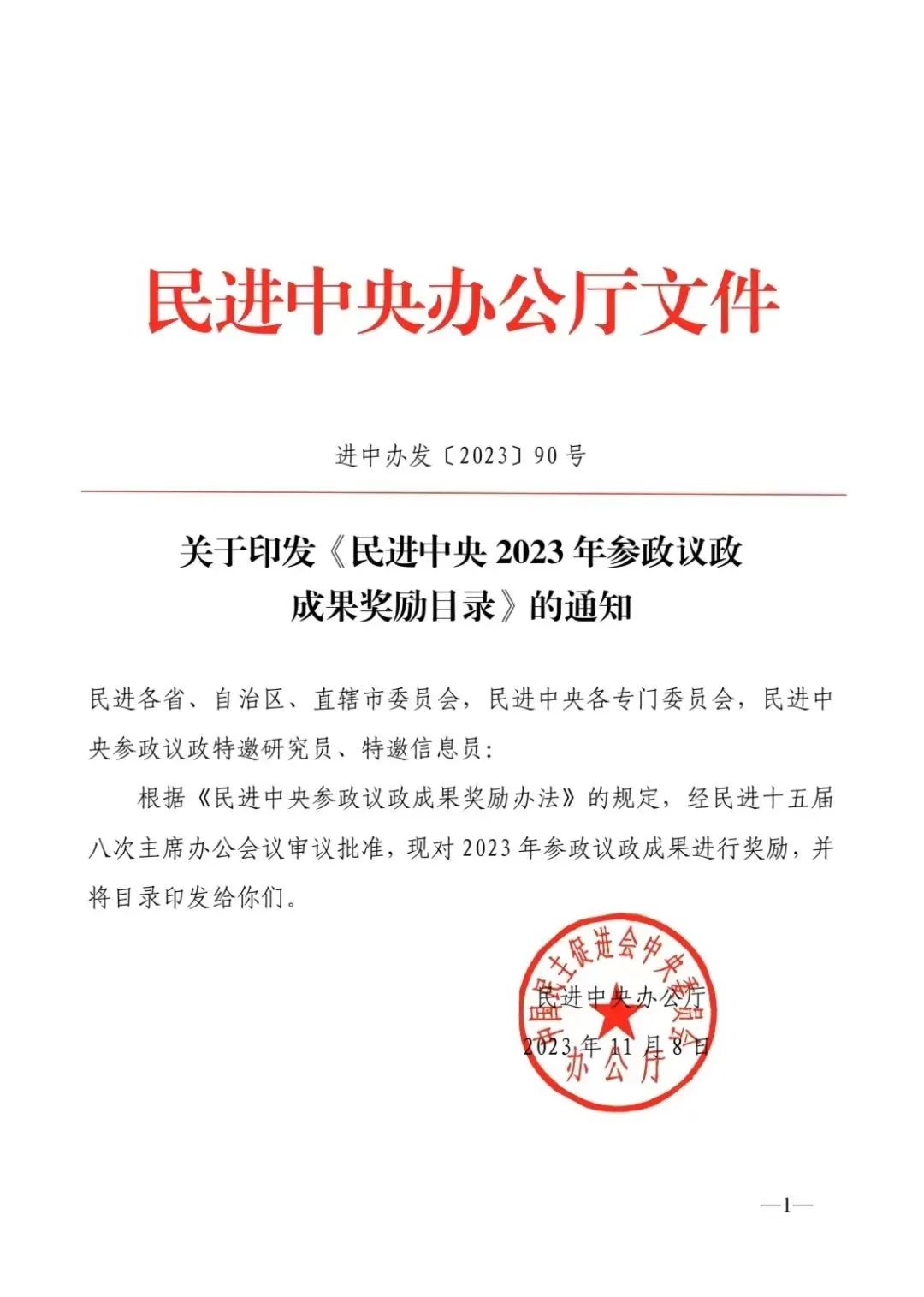 学院督学焦光利提交的社情民意信息荣获民进中央2023年参政议政成果一等奖