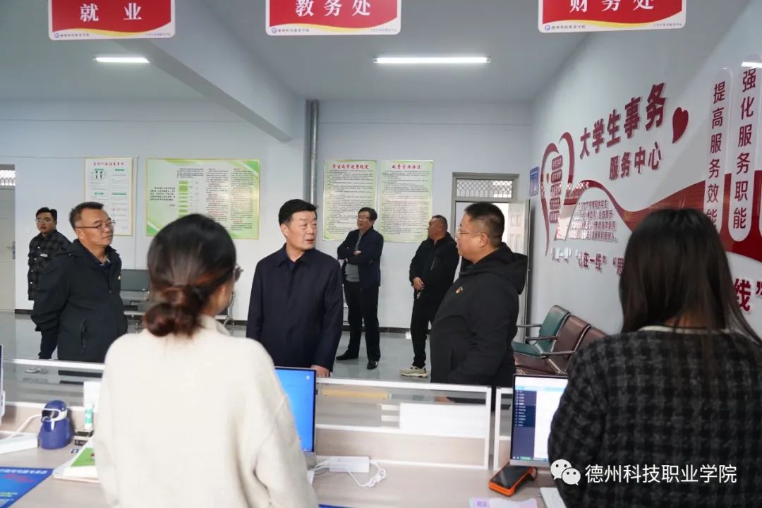刘继泉十分关心大学生日常服务工作。在大学生事务服务中心,刘继泉与各服务窗口人员深入交流,询问日常工作任务和疑难问题,并要求他们履职尽责、担当作为,坚守服务岗位,遵守工作要求,确保服务质量和服务效果,努力做到学生事务“一站式”办理,构建高质量协同联动的学生服务管理体系,为学生提供更优质、更多样、更贴心的服务便利。