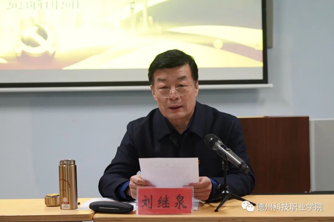 刘继泉指出,全体党员教师要充分认识学习贯彻习近平新时代中国特色社会主义思想的重大意义,把深入开展主题教育作为重大政治任务,牢记 “为党育人、为国育才”初心使命,全面、系统、深入学习习近平新时代中国特色社会主义思想,真抓实干、团结奋斗,统一思想、凝聚力量,在各自的教学岗位上建新功、作贡献、展形象,不断提高推动高质量发展本领、服务师生本领、防范化解风险本领,提振锐意进取、担当有为的精气神。