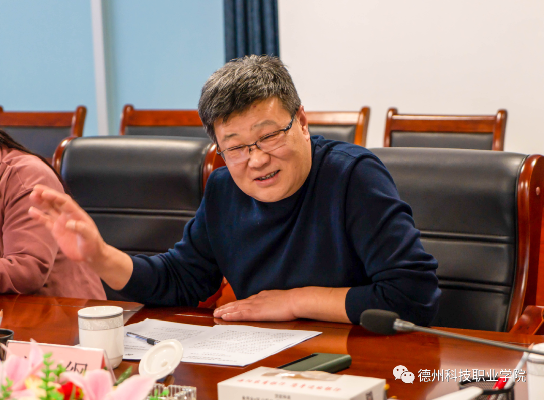 龚如锋对学院领导的热情接待表示衷心感谢,介绍了中舜集团和无锡南洋职业技术学院的基本情况。他指出,德州科技职业学院在深化产教融合、创新实训基地建设方面有着超前规划和成熟模式,对无锡南洋职业技术学院即将实施的“学院+产业”发展规划有着重要的借鉴意义,是本次考察学习的重点,希望两校加强互动,共谋发展。李新民主要围绕学院概况、机构设置、专业建设和“一院一品”人才培养特色等内容详细介绍了无锡南洋职业技术学院的情况。