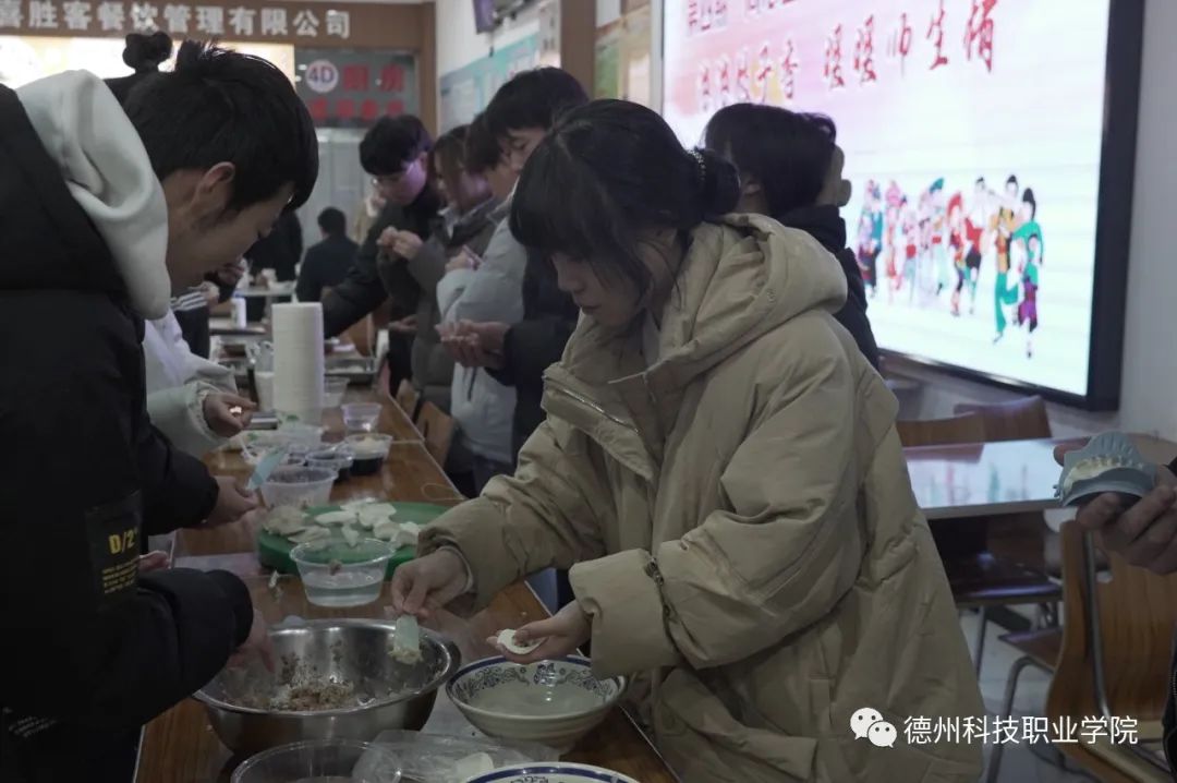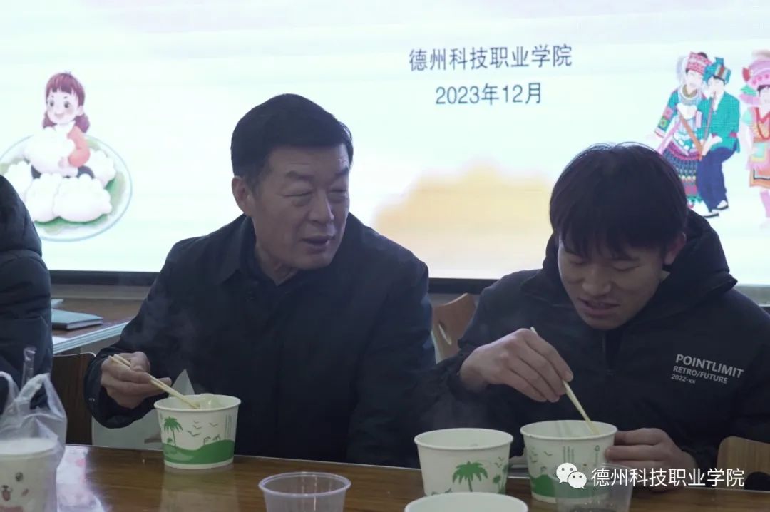 主题活动的座谈会环节结束后,刘继泉、宫淑瑰、张祖军等,与师生们一道前往学生第一餐厅包水饺迎冬至。