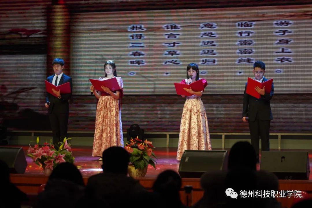 晚会在歌曲《旗帜更鲜艳》中正式拉开帷幕。回顾历史,共产党员在纷飞战火中披荆斩棘,鲜艳红旗在硝烟弥漫中高高飘扬;继往开来,时代赞歌在沧桑巨变中更加嘹亮,祖国万物在翘首期盼中安然抒怀。此时此刻,德科师生欢聚一堂,以歌为笔,书写新征程上的华章;以舞为墨,描绘未来旅途的梦想。