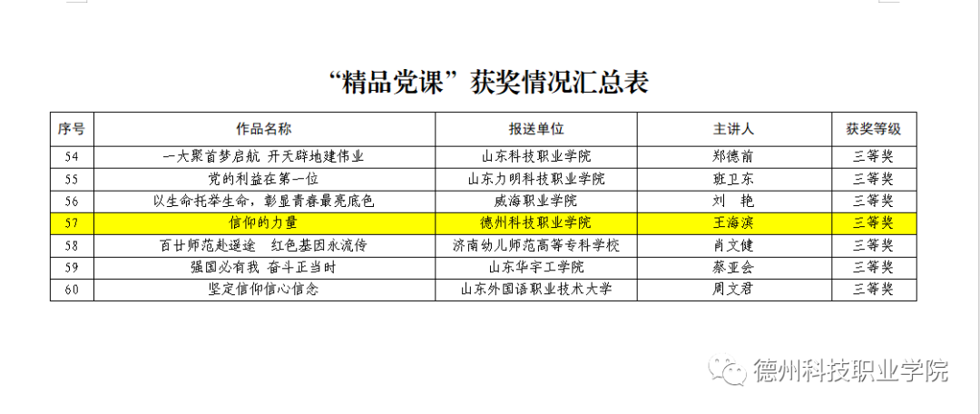 近日,中共山东省委教育工委公布了全省高校“精品党课”活动获奖名单,本科教育学院王海滨老师的党课作品《信仰的力量》在评选中荣获三等奖。