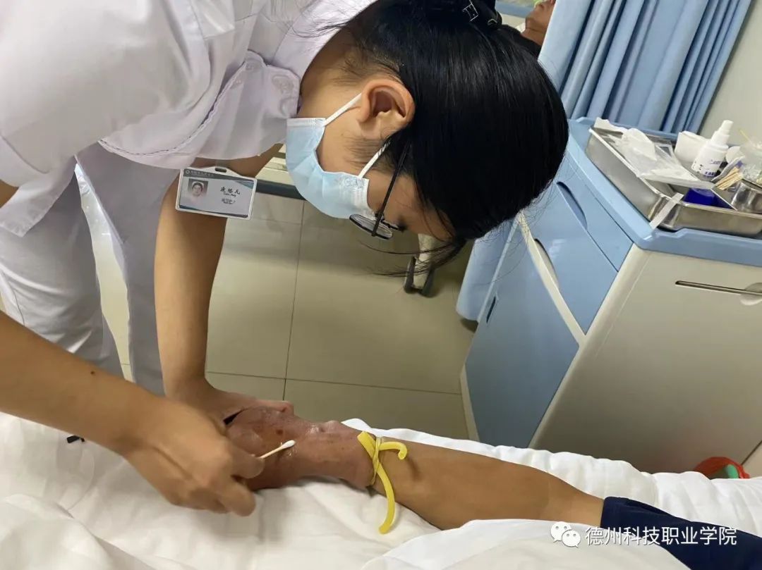 作为一名中共预备党员,逄格凡深知学好专业知识、服务人民群众的责任感、使命感。在禹城市人民医院临床实习期间,她为了提高护理技能,认真跟随带教老师学习,细心观察熟练操作,积极交流护理问题,反复磨练技能本领。对于年龄较老的病号,血管并不是那么好找,常常一针扎不上,她有时也会沮丧甚至怀疑自已。困难,是促她成长的良药;努力,是打不倒她的法宝。利用休班时间,逄格凡常常回到学院,通过输液臂练习扎针并向老师寻求建议,不怕苦、不怕累,最终自己护理操作水平得到了很大提升。越努力,越幸运,她坚信,通过自己的努力,终会到达理想的彼岸。
