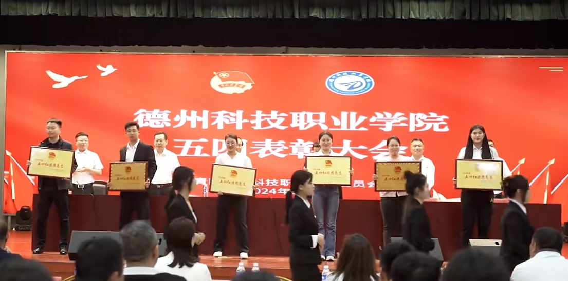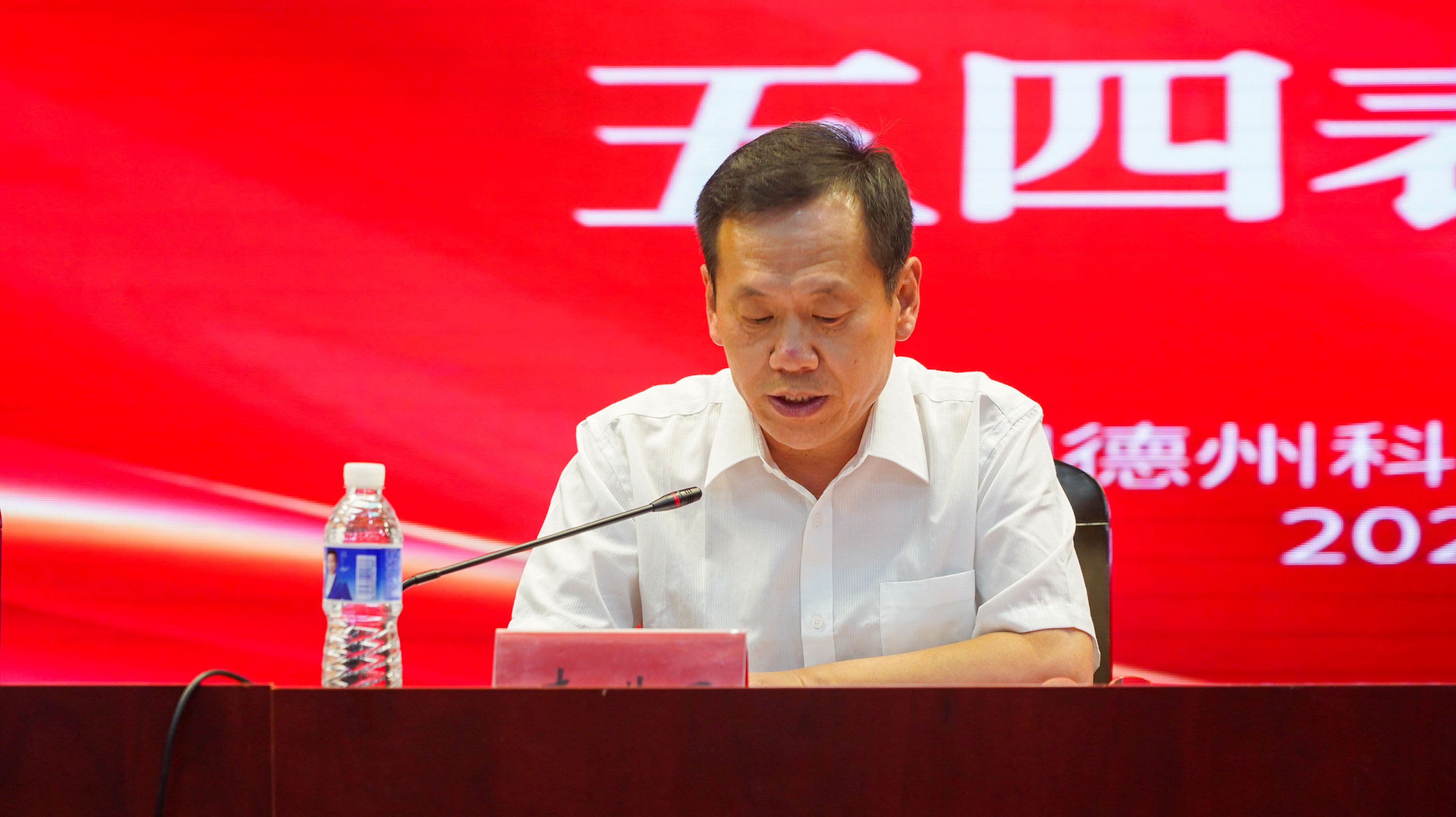 党委委员、副校长李进民宣读《关于表彰德州科技职业学院第六届“十大杰出青年”、2023 年“青年五四先进集体”、“青年五四先进个人”等的决定》和《德州科技职业学院2022—2023学年学生管理工作先进集体、先进班集体、优秀学生干部、优秀学生的表彰决定》。