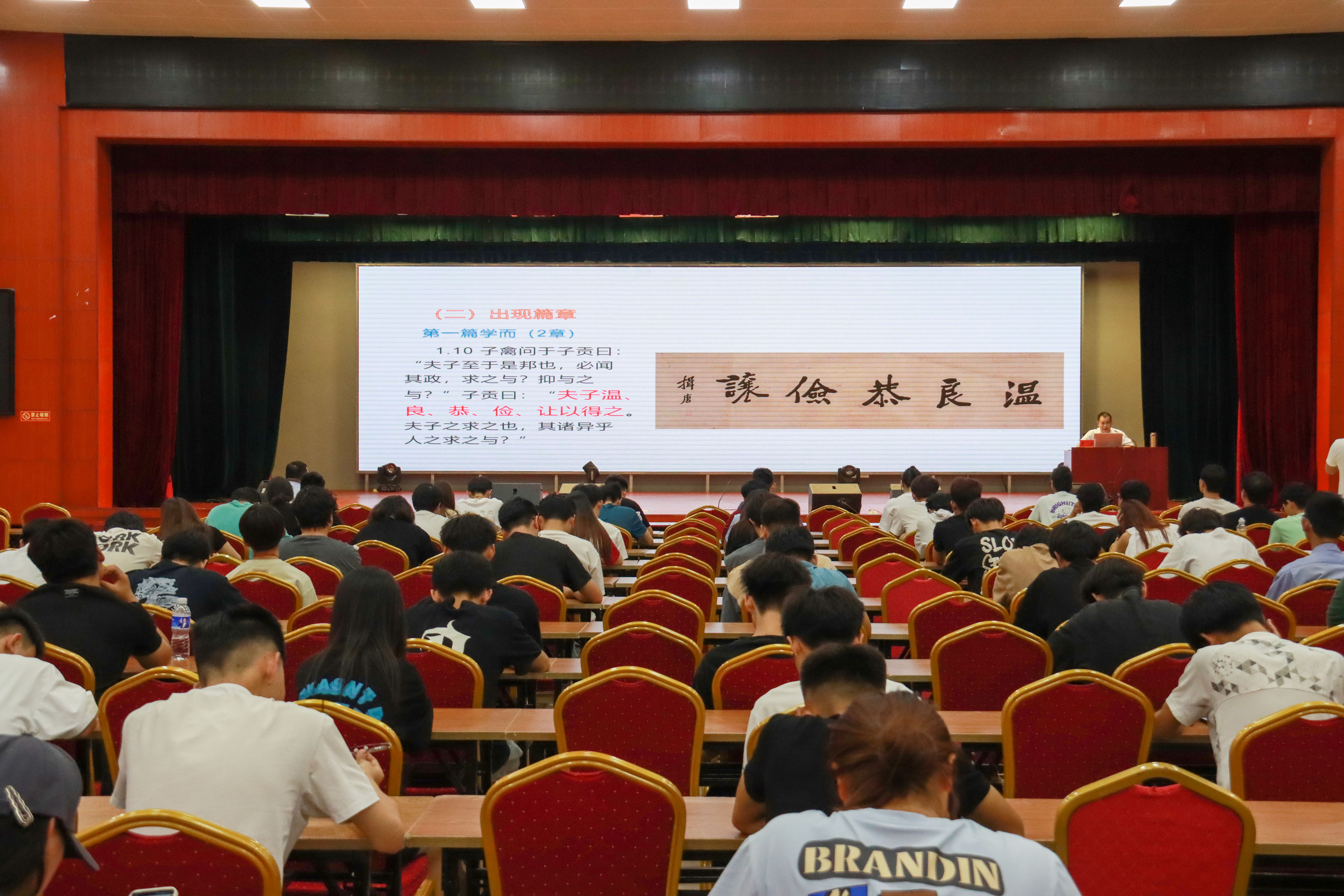 6月26日下午,学校第九期“德科论语大讲堂”在大禹大讲堂开讲。山东财经大学教授,尼山世界儒学中心特聘专家,山东省立德树人学会论语专业委员会主任,德科国学研究院院长王蔚教授为师生作第九期论语讲座。学校党委委员、党群工作部部长马东主持讲座。来自智能与航空学院的近200名大学生在现场聆听讲座。