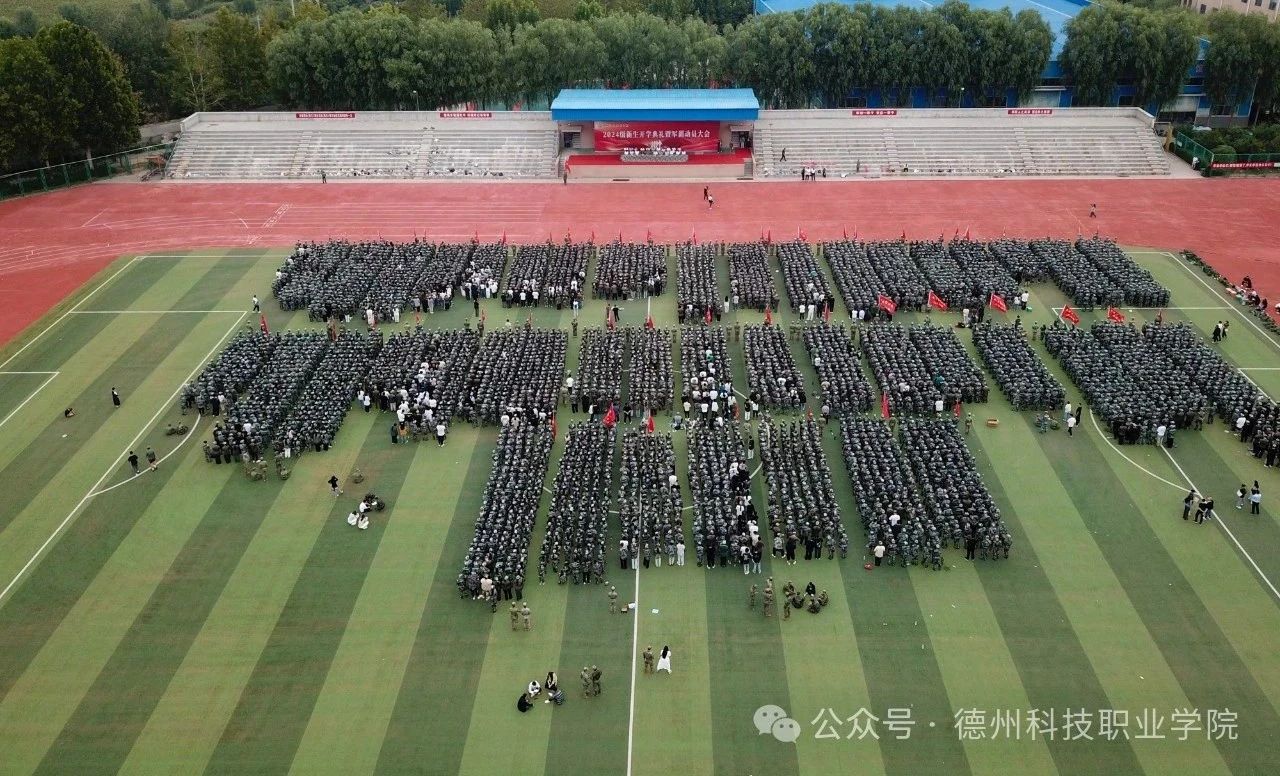 在热烈掌声中,校长亓俊忠作了讲话。亓俊忠首先代表学校全体师生向2024级新同学表示欢迎,向辛勤培育的教师、家人以及此次承训教官们表示感谢。他指出,自办学以来,学校始终肩负教育报国的光荣使命,一代代前辈先贤薪火相传,书写了躬耕教坛、强国有我的志向抱负,一批批德科学子砥砺奋进,绘就了紧跟时代步伐、勇于担当重任的奋斗篇章。
