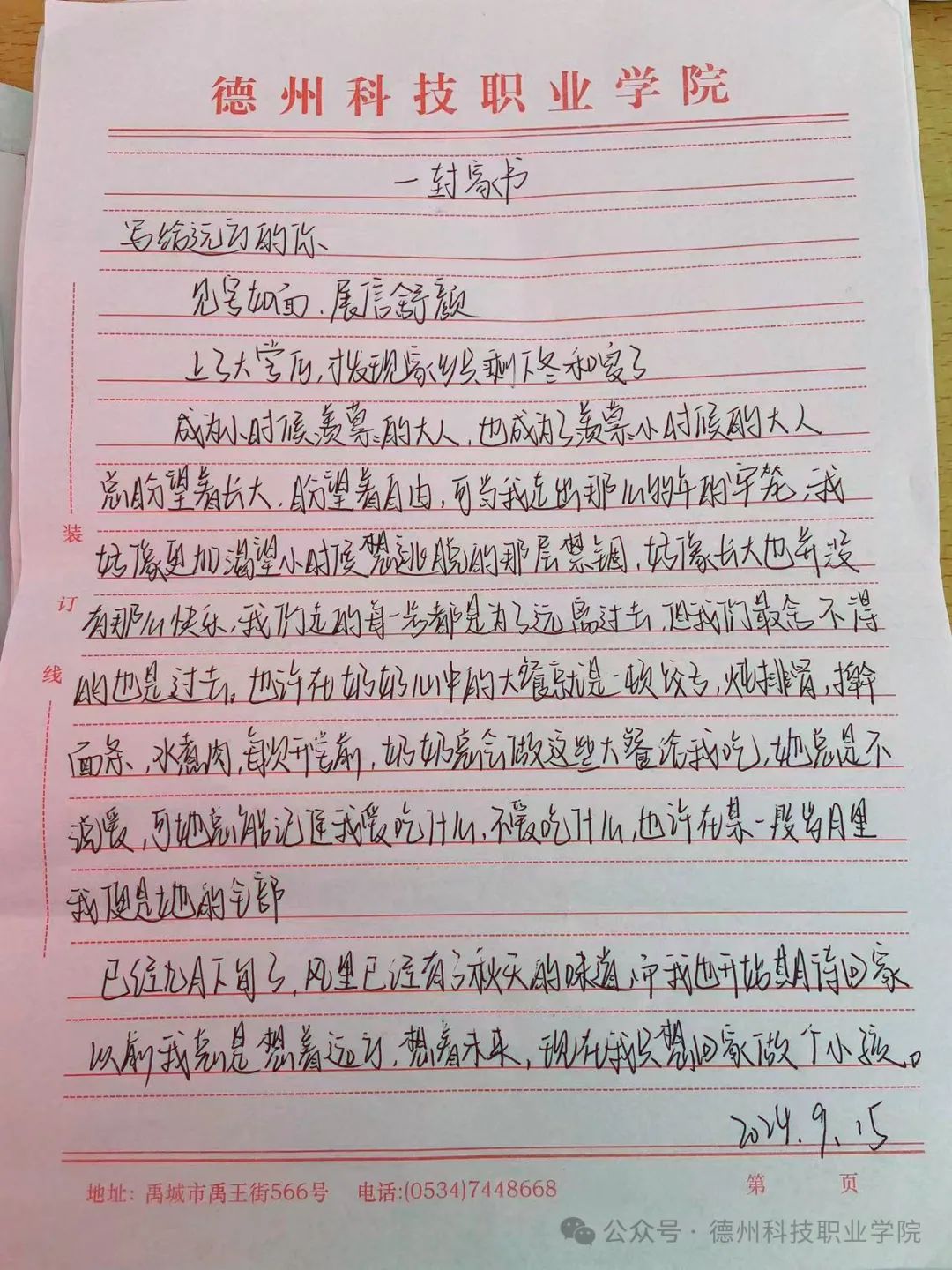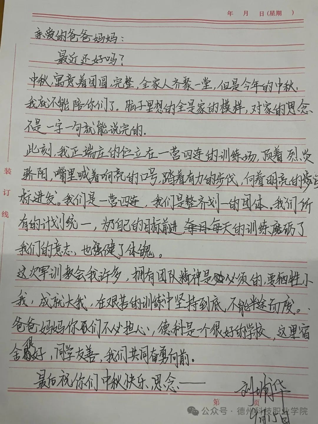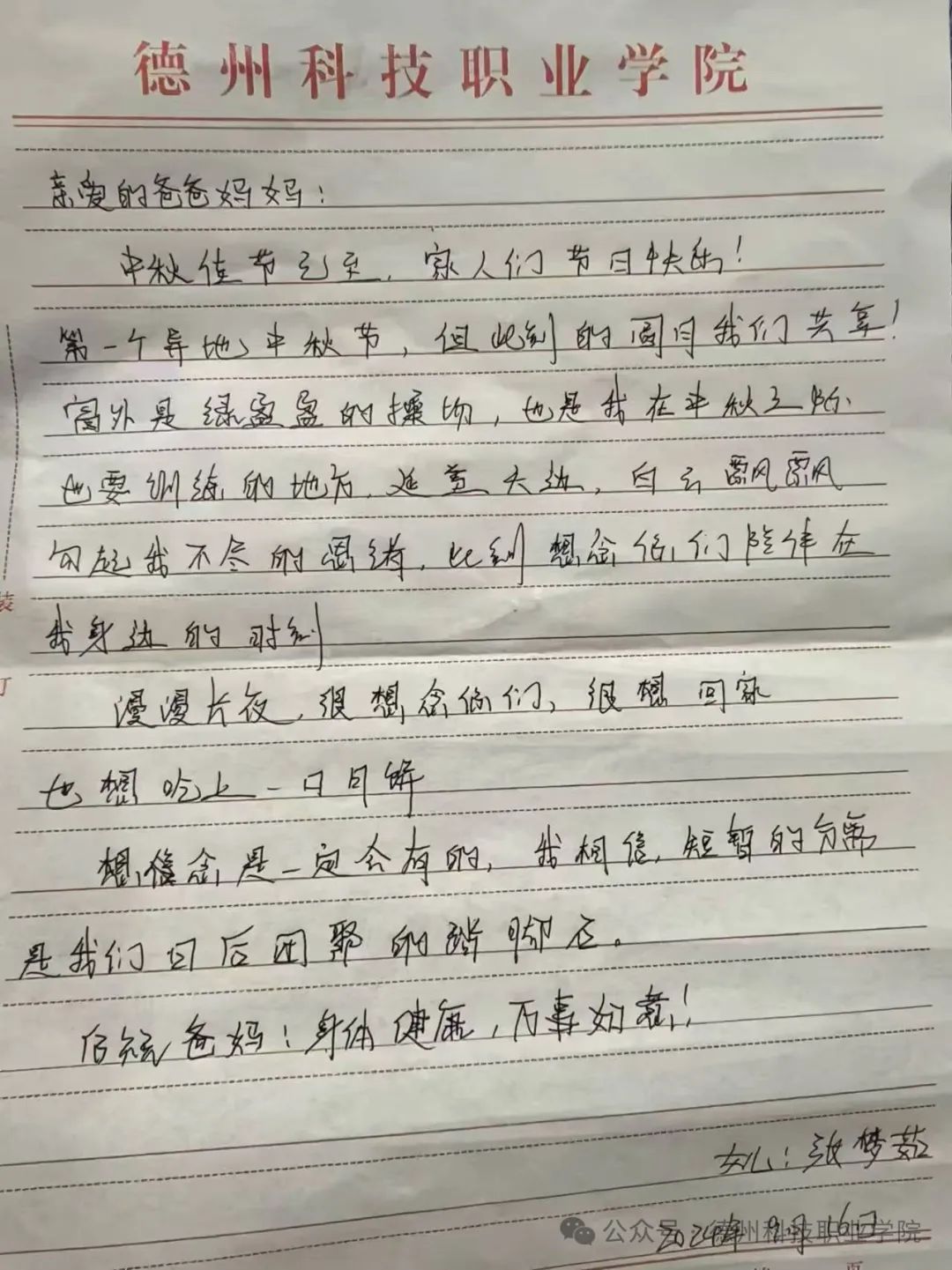 学校举办中秋节一封家书活动,感受到学校用心至极,让我与父母爱的距离又进了一步,他们收到家书之后,没想到我这么含蓄的一个女孩会这么勇敢的表达心中的爱意和情绪。让我感受到沐浴在父母的爱意之下,是无比幸福的事情。