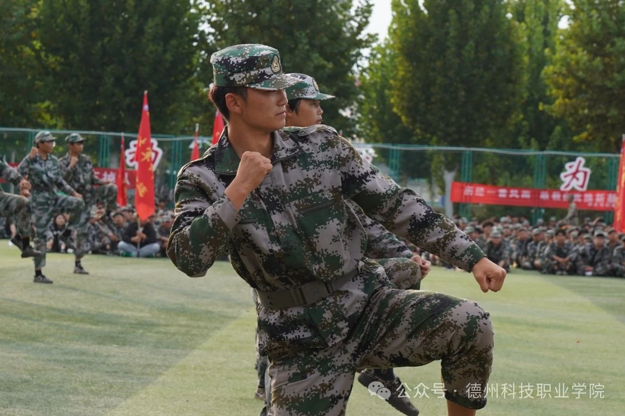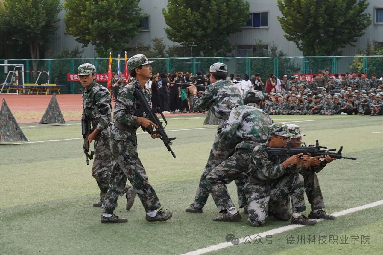 伴随着分列式进行曲,全体2024级新生以嘹亮的口号、整齐的步伐、抖擞的精神,依次通过主席台,向学校汇报为期17天的军训成果,随后,部分连队进行了队列展示、刺杀、军体拳、格斗术、旗语、战场战术等军训科目汇报演出。2024级新生整齐划一的动作、气势恢宏的口号、精彩优异的表现,展示出德科学子昂扬风采,赢得现场师生的阵阵掌声。
