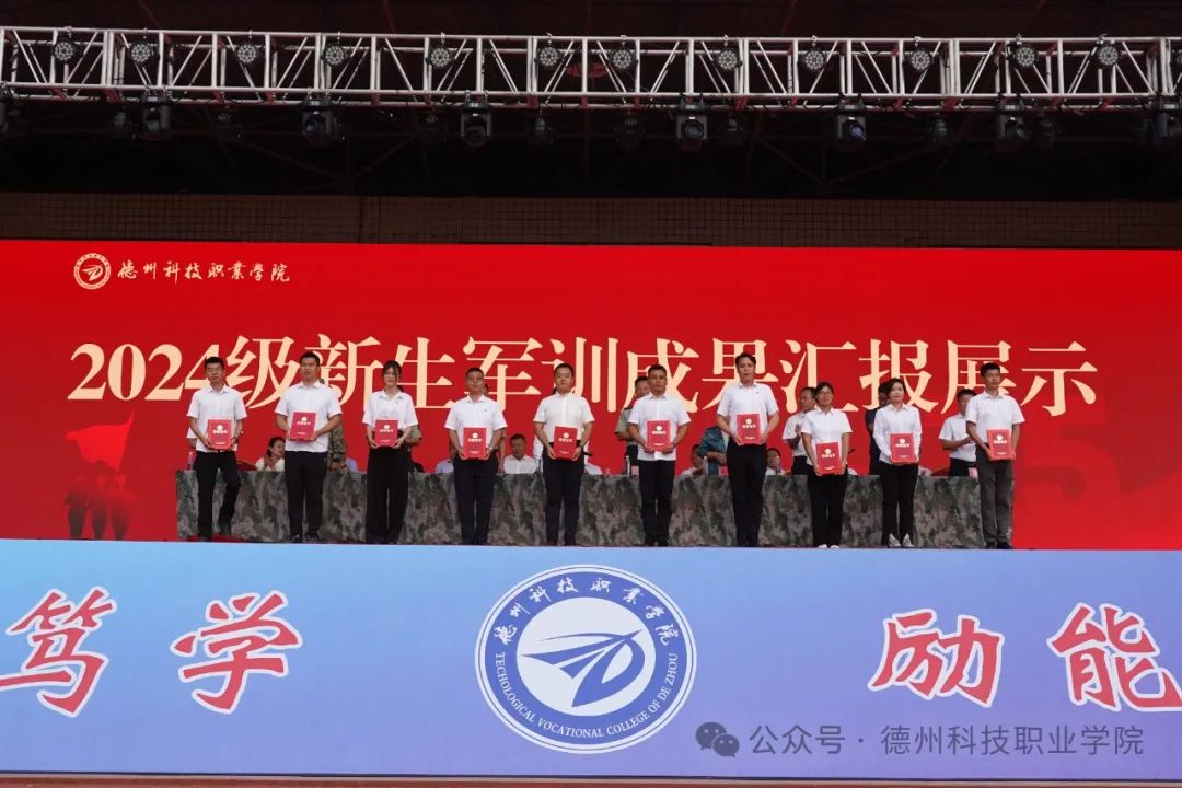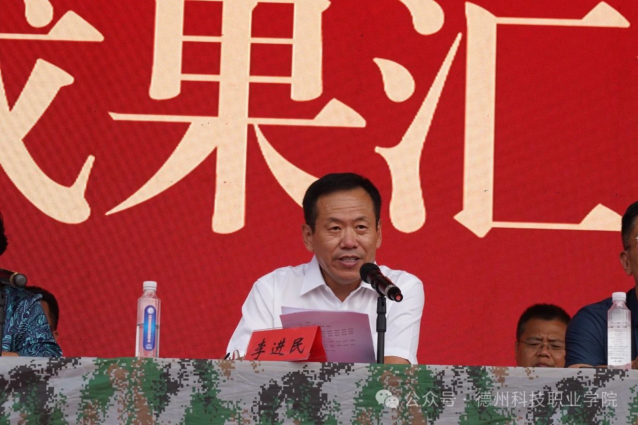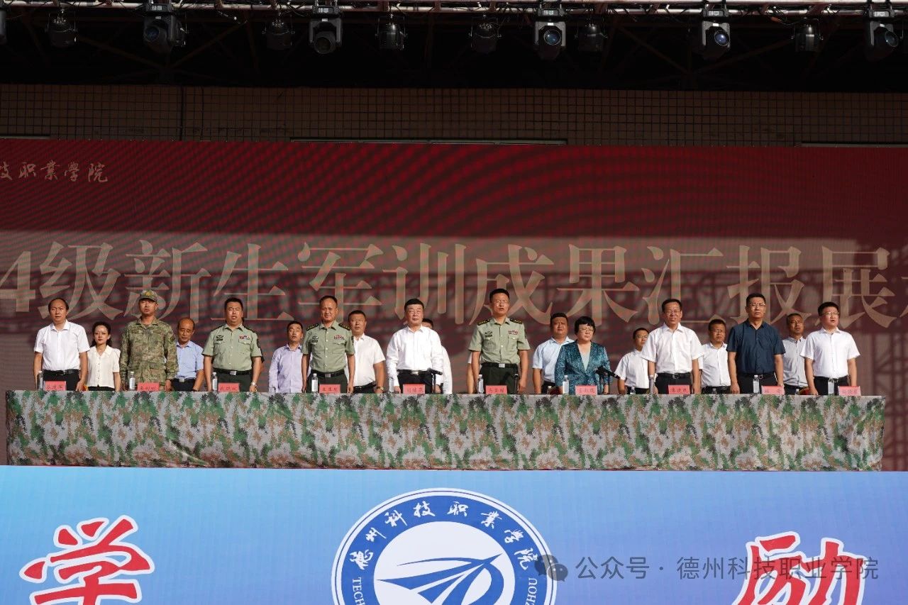 时维九月,序属三秋,大地流金,硕果飘香。9月29日下午,学校在体育场举行2024级新生军训成果汇演。中国人民解放军32101部队领导,禹城市人民武装部部长王亚明,学校党委书记刘继泉,党委委员、副校长李进民,省委教育工委派驻学校党建工作指导员杜峰、谷建军,党委委员孙强强,以及各部室、二级学院负责人一同参加活动。学校党委副书记、执行校长宫淑瑰主持活动。