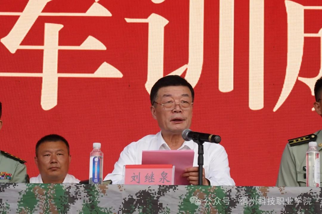 在热烈掌声中,党委书记刘继泉讲话。他首先向辛勤付出、严格训练的全体教官表示感谢,向勇于挑战自我、刻苦训练、圆满完成各项任务的全体参训同学表示祝贺。