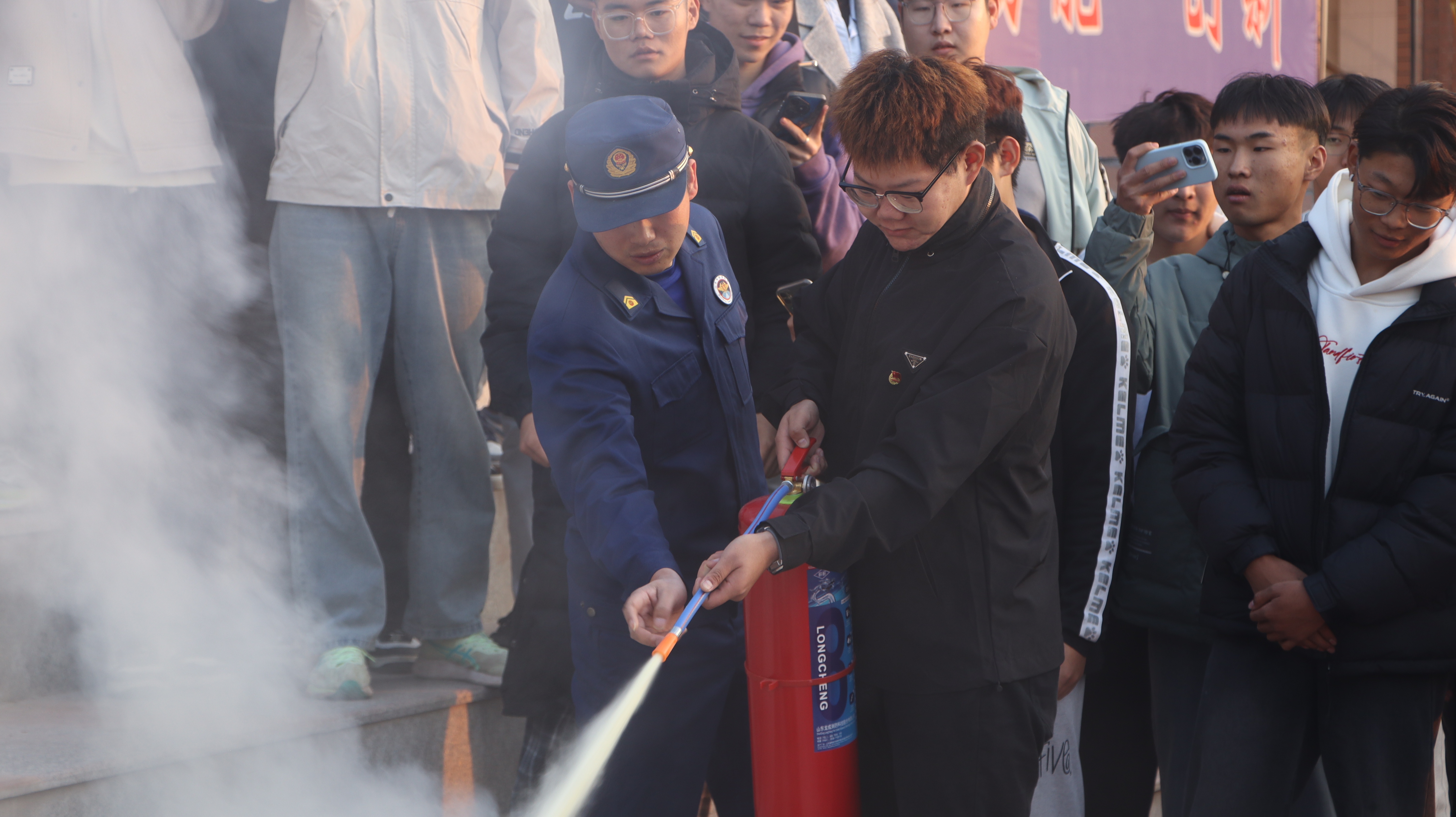 在第33个全国消防日来临之际,为预防和减少校园火灾的危害,提高全校师生安全意识和自防自救能力,保障人身财产安全,11月7日下午,学校组织2024级全体新生开展秋季校园消防应急演练。学校党委委员、副校长李进民出席活动并作消防演练动员讲话。禹城市消防救援大队队长杨烁鑫,学校党委委员马东、孙强强参加活动。