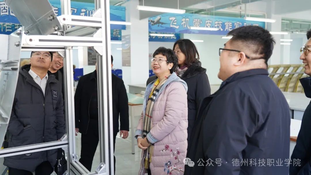 王建枝一行先后实地参观了学校的航空工程实训中心、新能源汽车实训中心和沙盘展厅等,听取各实训室有关负责人对现有实训设施建设、管理、使用情况的介绍,详细了解各实训中心的功能布局、设备配备与学生实训状况,对学校近年来在教学管理、实习实训、科研创新等方面取得的成绩给予了高度评价。