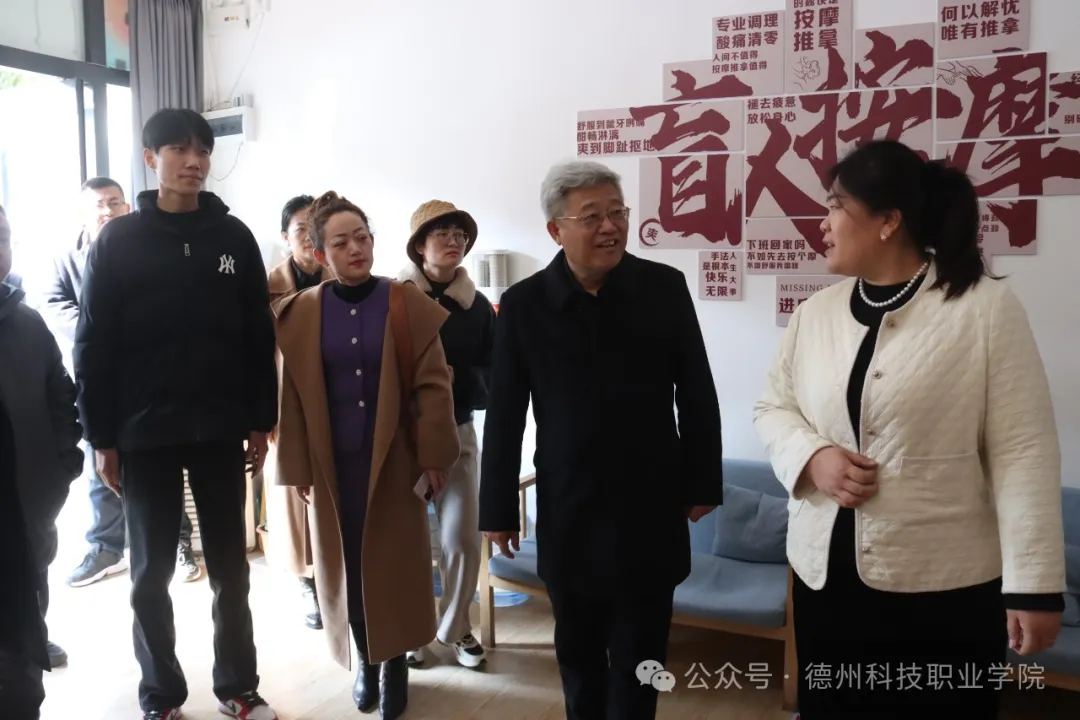 在金乡县残疾人联合会理事长皮风伟的陪同下,学校一行实地观摩、考察了金乡县残疾人就业基地的盲人按摩实训室、非遗手工艺工坊等特色项目,详细了解了残疾人就业现状、岗位适配模式及政策支持体系。