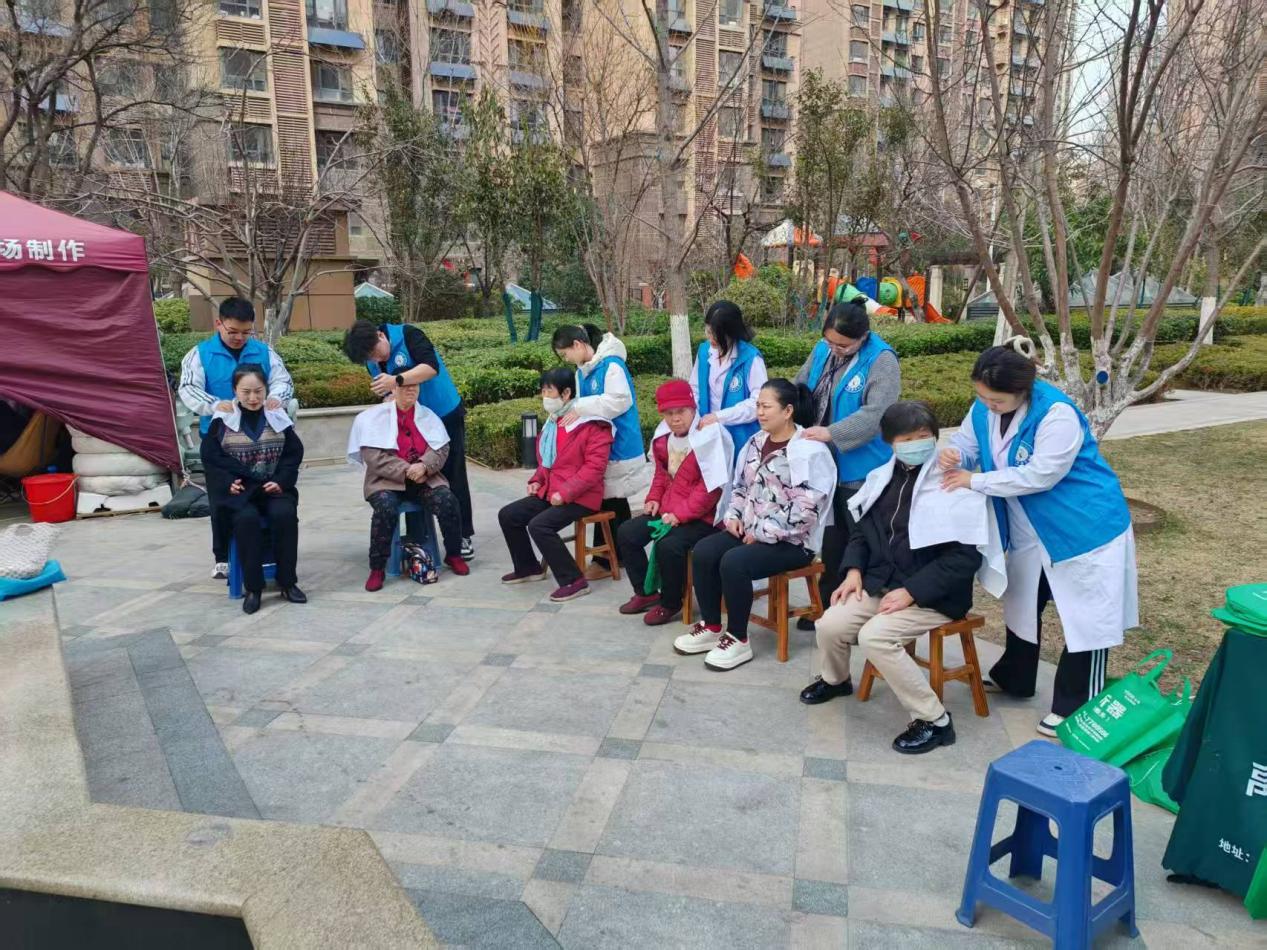 在禹城市大禹社区,医学护理学院中医康养社团搭建起临时理疗点,为居民提供推拿按摩服务。志愿者们运用课堂所学手法,为长期伏案工作的上班族缓解肩颈疲劳,帮助老年居民疏通经络、放松肌肉。服务过程中,学生们还结合春季养生特点,耐心讲解日常保健知识,将中医“治未病”理念融入生活化指导。不少居民体验后表示身心舒畅,对志愿者的专业素养连连称赞。