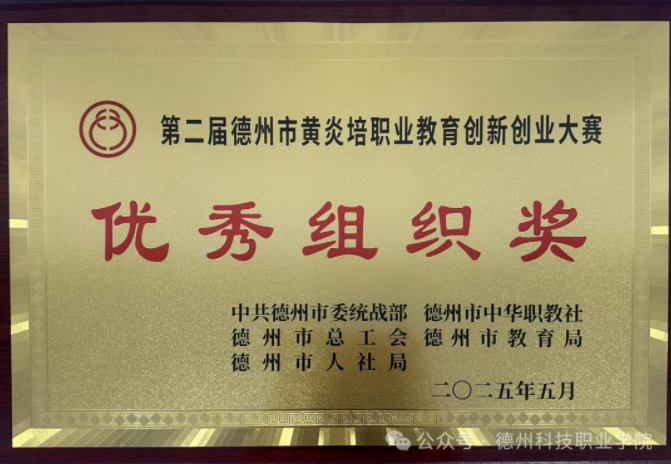 近日,由中共德州市委统战部、德州市中华职业教育社、德州市总工会等部门联合主办的第二届德州市黄炎培职业教育创新创业大赛圆满落下帷幕。经过校内选拔赛、市级复赛、市级决赛的层层筛选和激烈角逐,学校参赛师生团队凭借扎实技能与卓越表现,斩获学生组一等奖3 项 、二等奖 4 项、三等奖 14 项,教师组二等奖2 项、三等奖2项。学校同时荣获“优秀组织奖”,彰显了出色的赛事组织工作和学生培养成效。