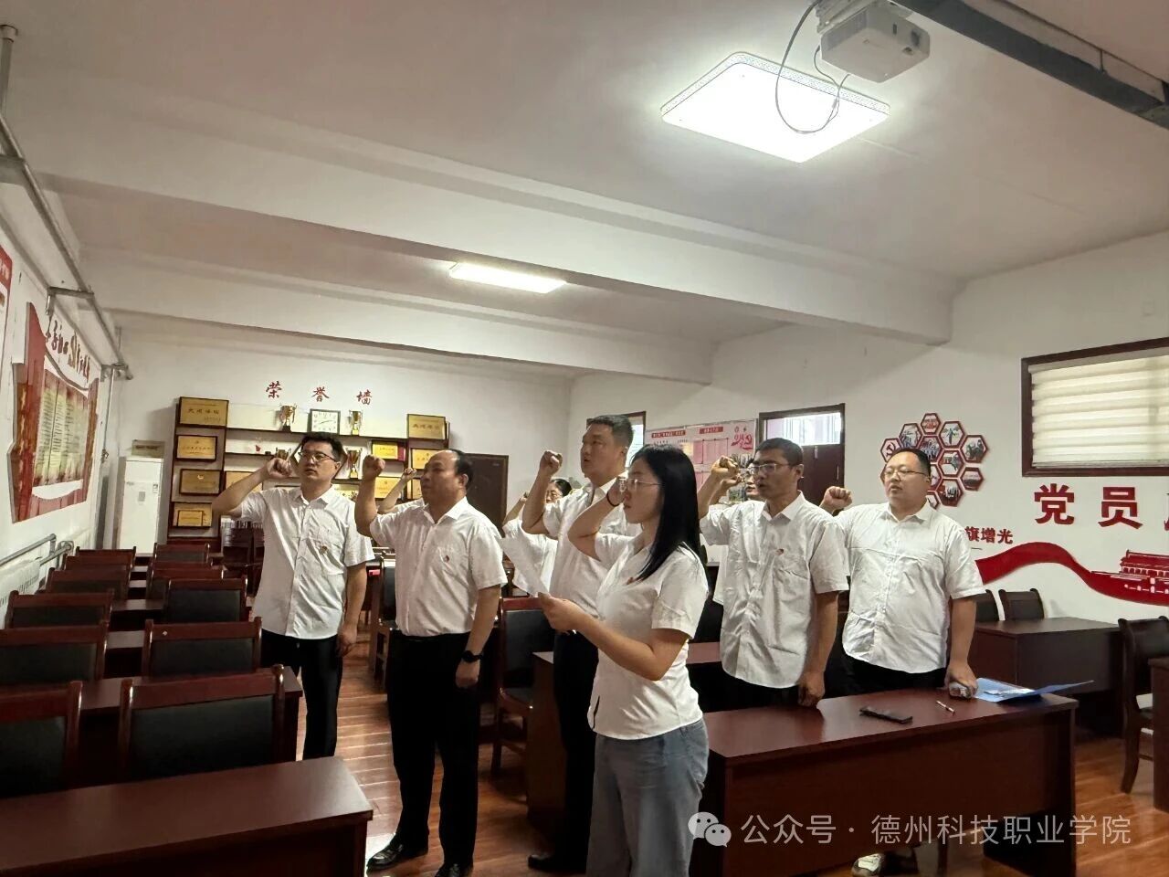 全体党员先后参观了老火车站票房、水塔、日军兵营等历史遗址,详细了解了禹城大战的历史背景、作战过程和伟大意义。过程中,大家边走边看、边听边问、边学边思,透过一道道清晰可见的弹痕和一段段可歌可泣的事迹,深刻感受到革命先辈为民族独立和人民解放事业不畏强暴、浴血奋战的英雄气概和崇高精神,对党的光辉历程和抗战的艰苦卓绝有了更加直观和深刻的认识。 参观结束后,全体党员进行了庄严的宣誓仪式。面向鲜红的党旗,大家高举右拳、神情庄重,一起重温入党誓词。“我志愿加入中国共产党,拥护党的纲领,遵守党的章程……”一句句誓词铿锵有力,振奋人心。