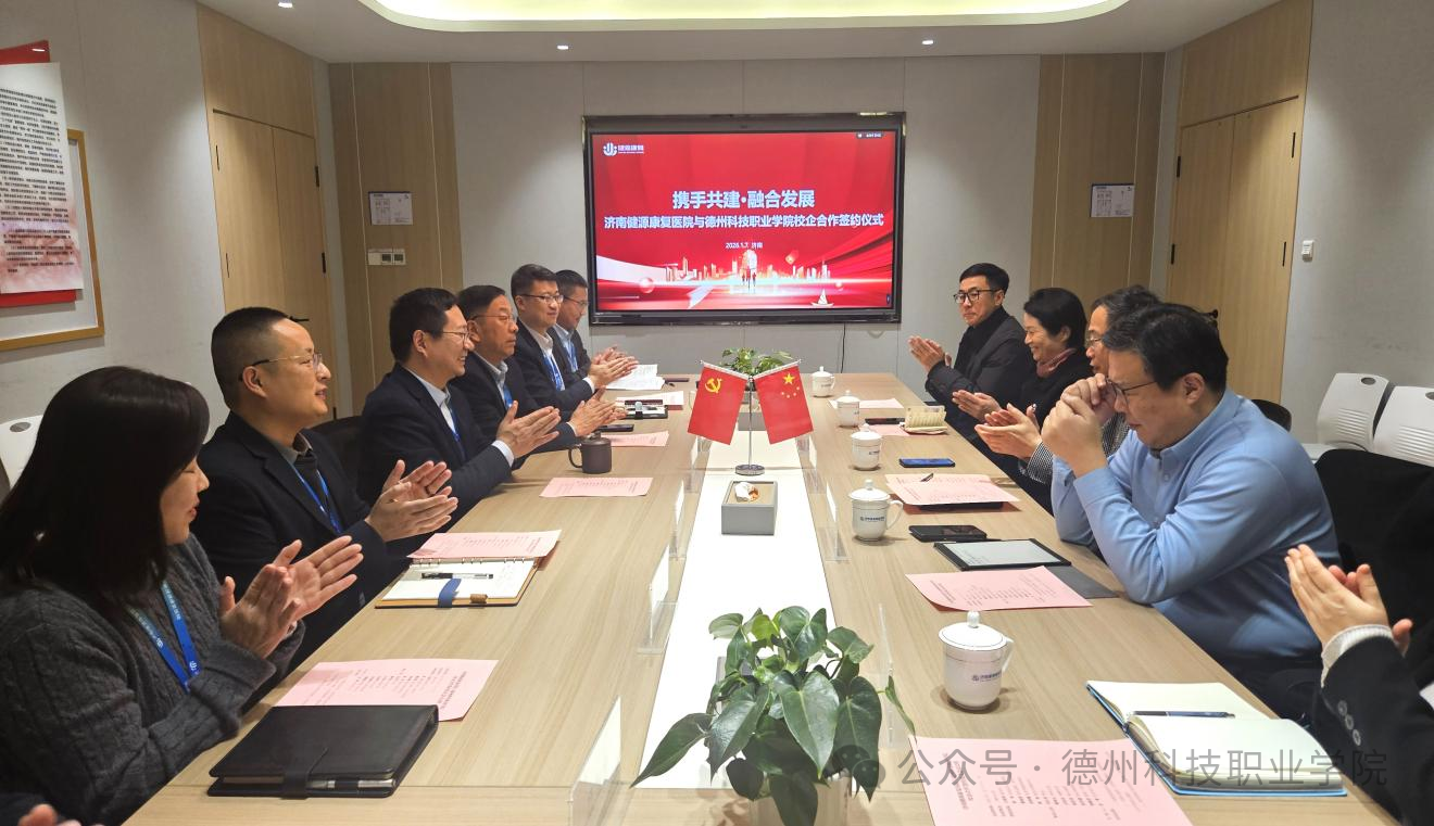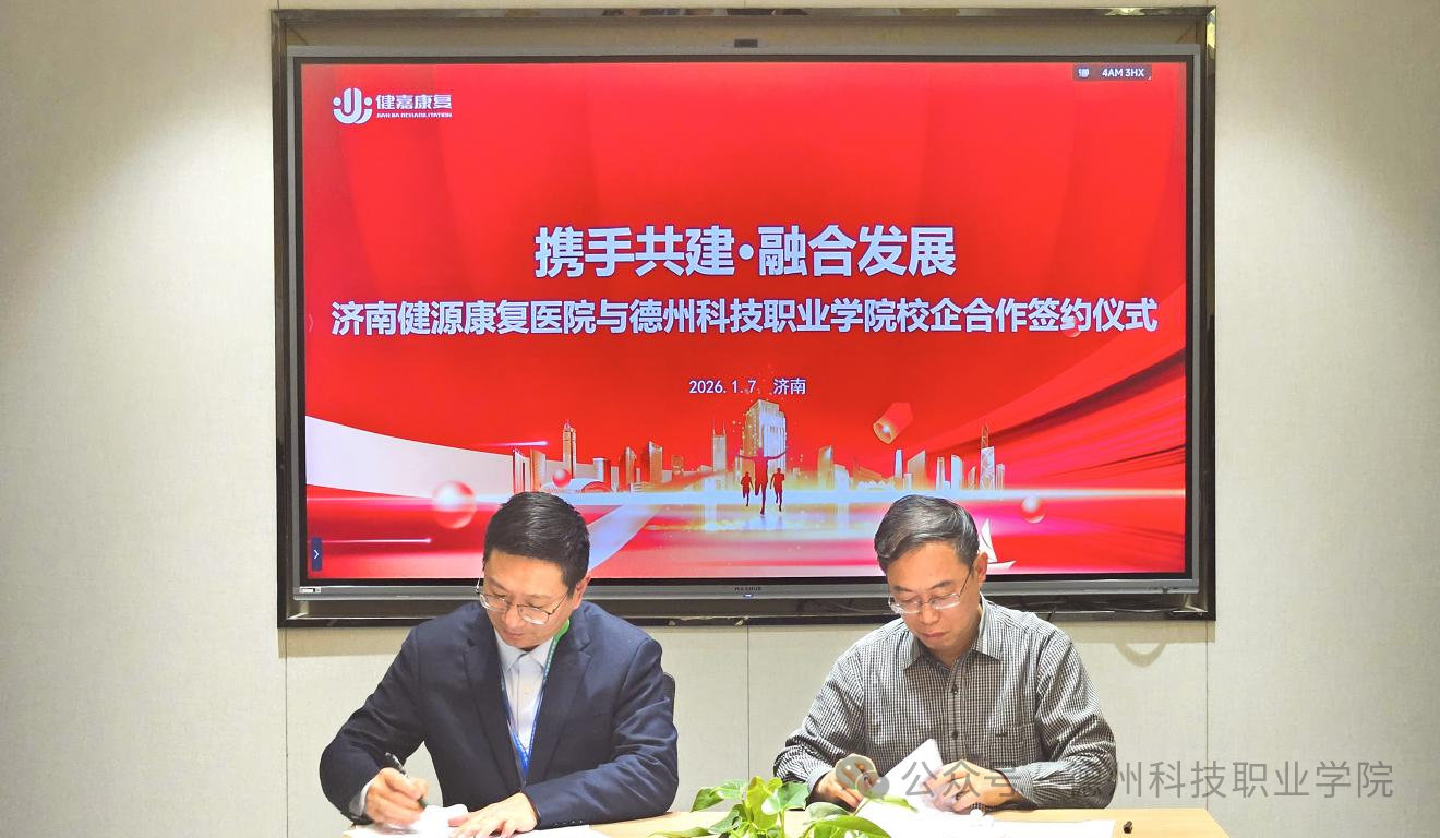 为进一步深化校企合作,共同培养康复治疗技术专业人才,1月7日下午,学校与济南健源康复医院签订校企合作协议。学校党委副书记、校长王昭风,党委委员、副校长周伟,校长助理、医学护理学院党总支书记、院长屠桂英参加签约仪式。