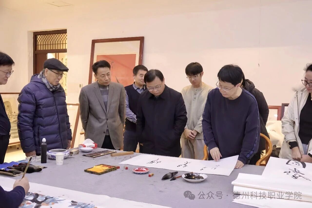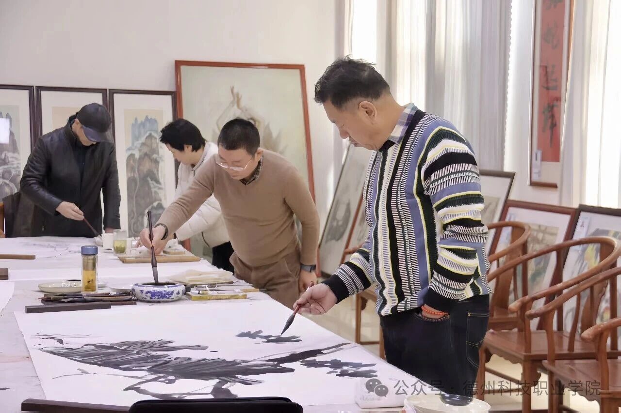 1月8日,由香港卫视总台国际书画研究院主办的“冬春书画进校园”活动在学校成功举办。此次活动旨在弘扬中华优秀传统文化,丰富校园文化生活,以书画艺术为载体,为师生带来一场高水平的文化盛宴。中国书法家协会理事、山东省书法家协会副主席靳永,香港卫视总台国际书画研究院院长李思峰,禹城市副市长孙登敬,学校首任书记、院长朱国材,董事长朱纪纲,党委书记刘兆东,以及禹城市文化馆、禹城市书协负责人和众多书画艺术家一同参加活动。