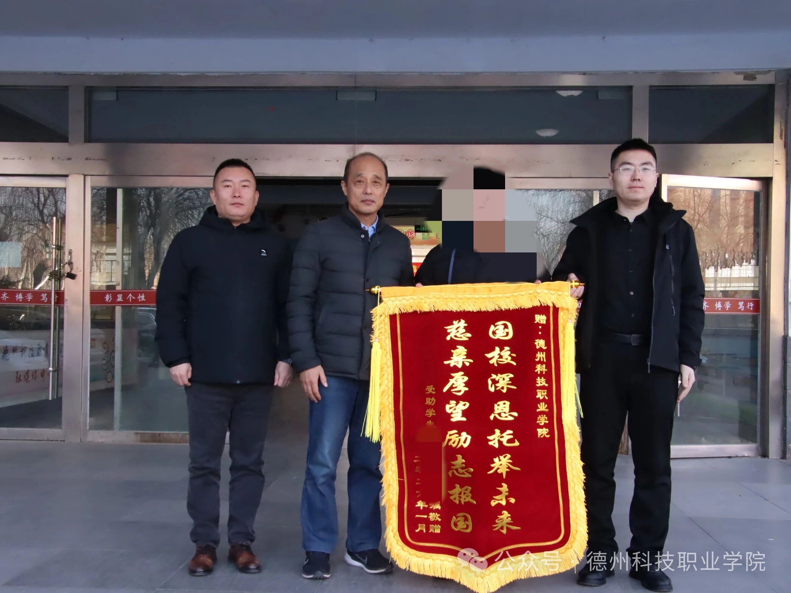 点滴帮扶润心田,拳拳感恩见行动。受助以来,该生曾多次手写感谢信,字里行间满是对学校和老师的感激之情。此前看到其他同学向学校赠旗致谢的场景,他深受触动,随即通过电话将这份温暖与感动分享给家人,便有了这次受家人嘱托送锦旗致谢的暖心一幕。