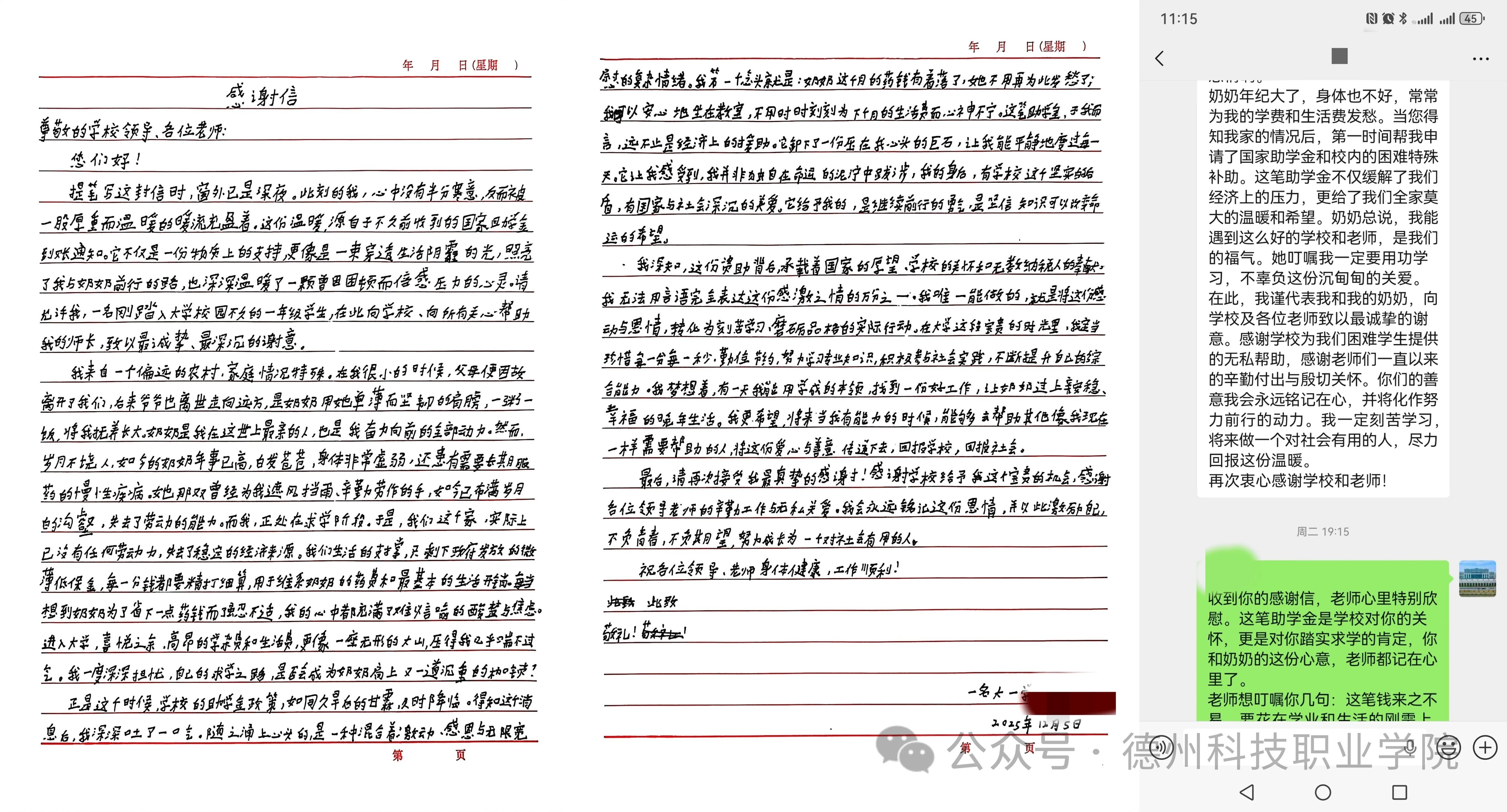 据悉,该生为家庭经济困难学生,开学报到之初,教育与艺术学院在了解到其家庭困境后,辅导员第一时间为其申报各类帮扶项目,成功获批4800元国家特殊困难助学金,并落实8000元建档立卡学费减免。这份及时的帮扶,让初入校园的他感受到了家一般的温暖,为其求学之路扫清了障碍。