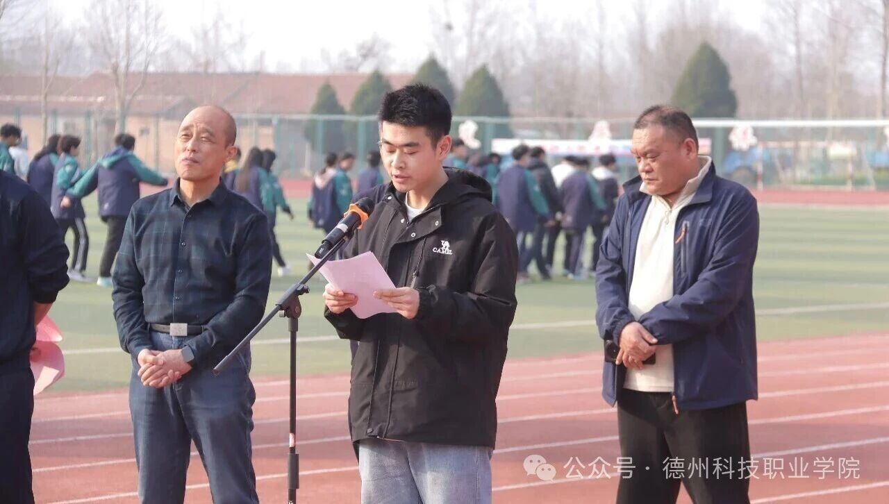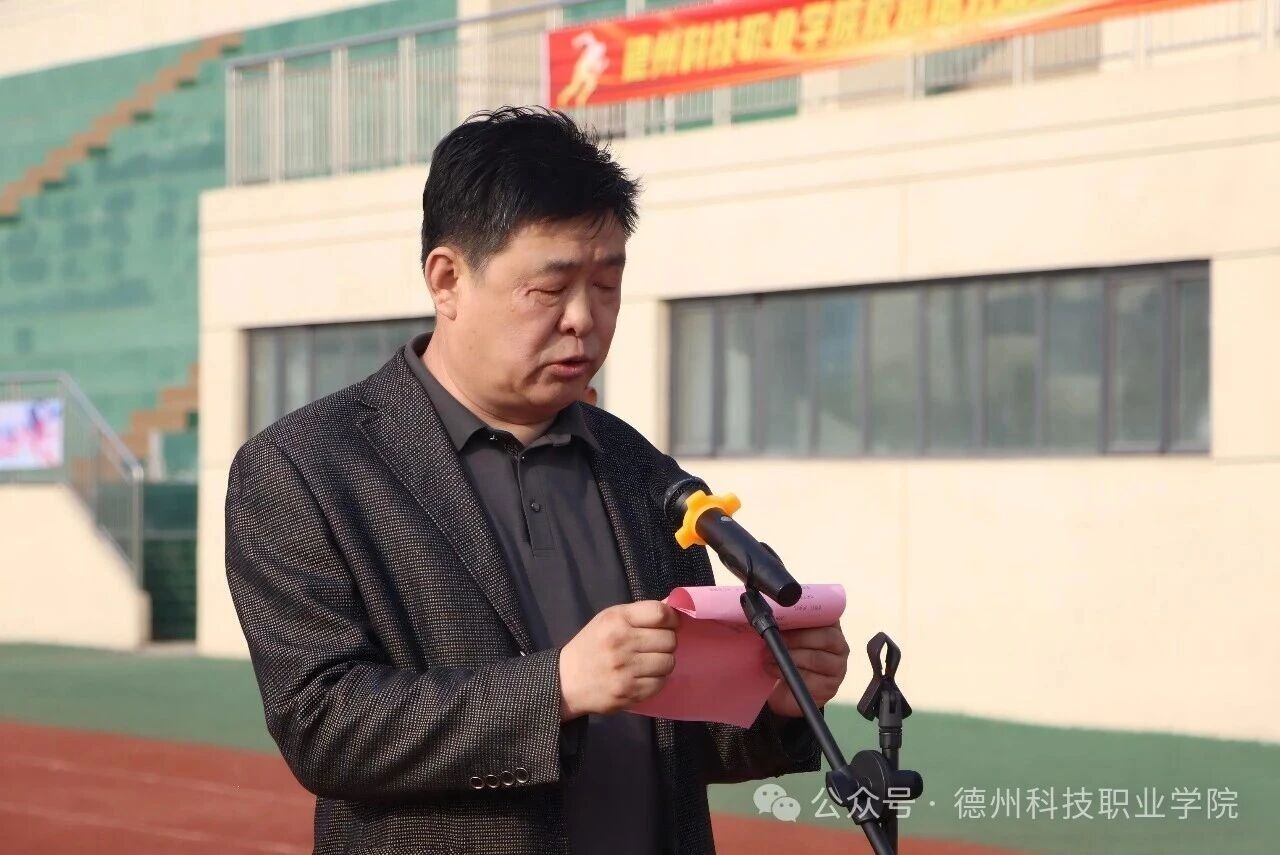 仪式上,基础教学部负责人宣读了《德州科技职业学院关于开展2025-2026学年校园阳光健康跑活动的通知》。
