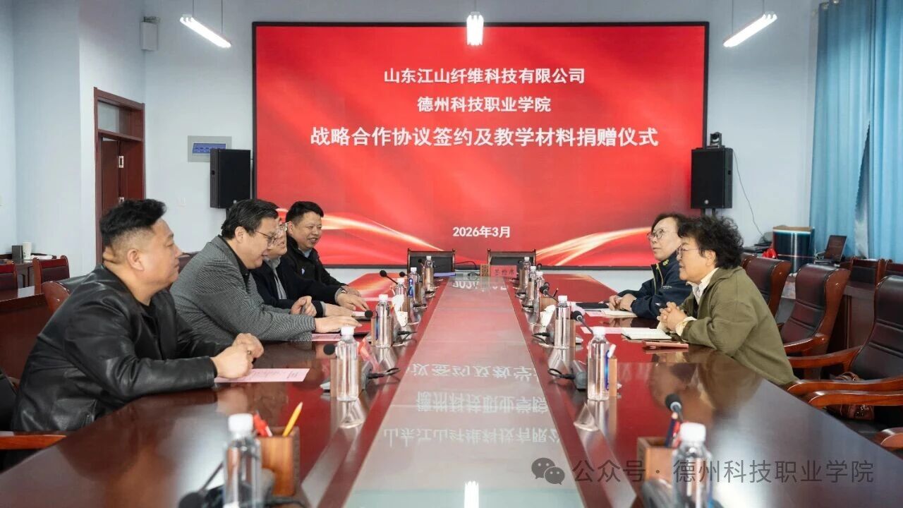 3月30日下午,学校与山东江山纤维科技有限公司举行校企合作战略合作签约暨捐赠碳纤维教学材料仪式。学校优秀毕业生、山东江山纤维科技有限公司总经理韩淑敏,学校党委委员、副校长周伟出席仪式并代表学校签署校企战略合作协议。